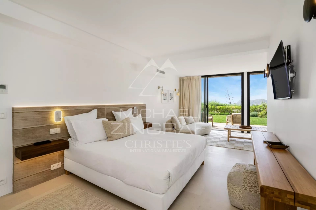 This magnificent villa in l'Escalet, one of the most beautiful beaches in the Gulf of Saint-Tropez, is a real gem with its panoramic sea view over Cap Taillat. It offers an exceptional setting for taking full advantage of the Mediterranean coastline. The 5 bedrooms, all with sea views, offer spacious, comfortable living space for all the family. The heated swimming pool is a haven of peace in which to relax and soak up the sun. The light-filled villa has been designed in a contemporary style, offering a modern and elegant living environment. The beautiful green grounds allow you to make the most of the outdoor space and the surrounding countryside. With the beach just a short walk away, this villa is ideally located for enjoying all the pleasures of the sea.