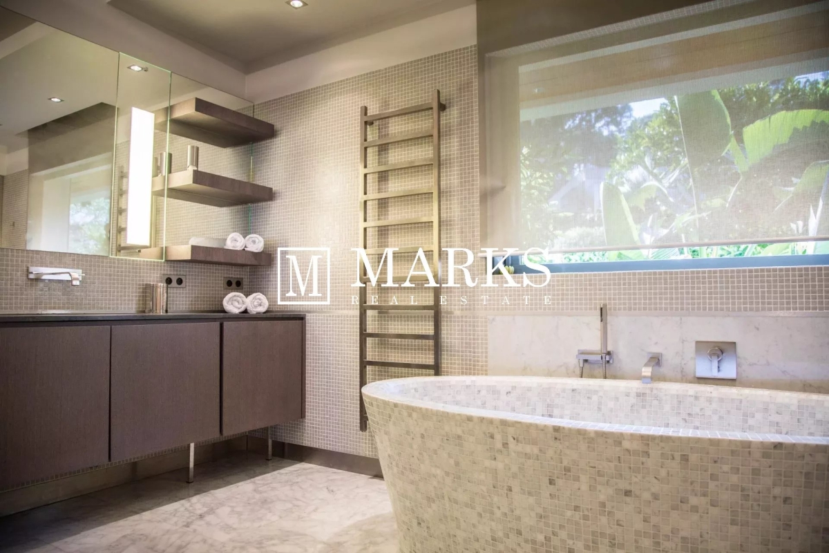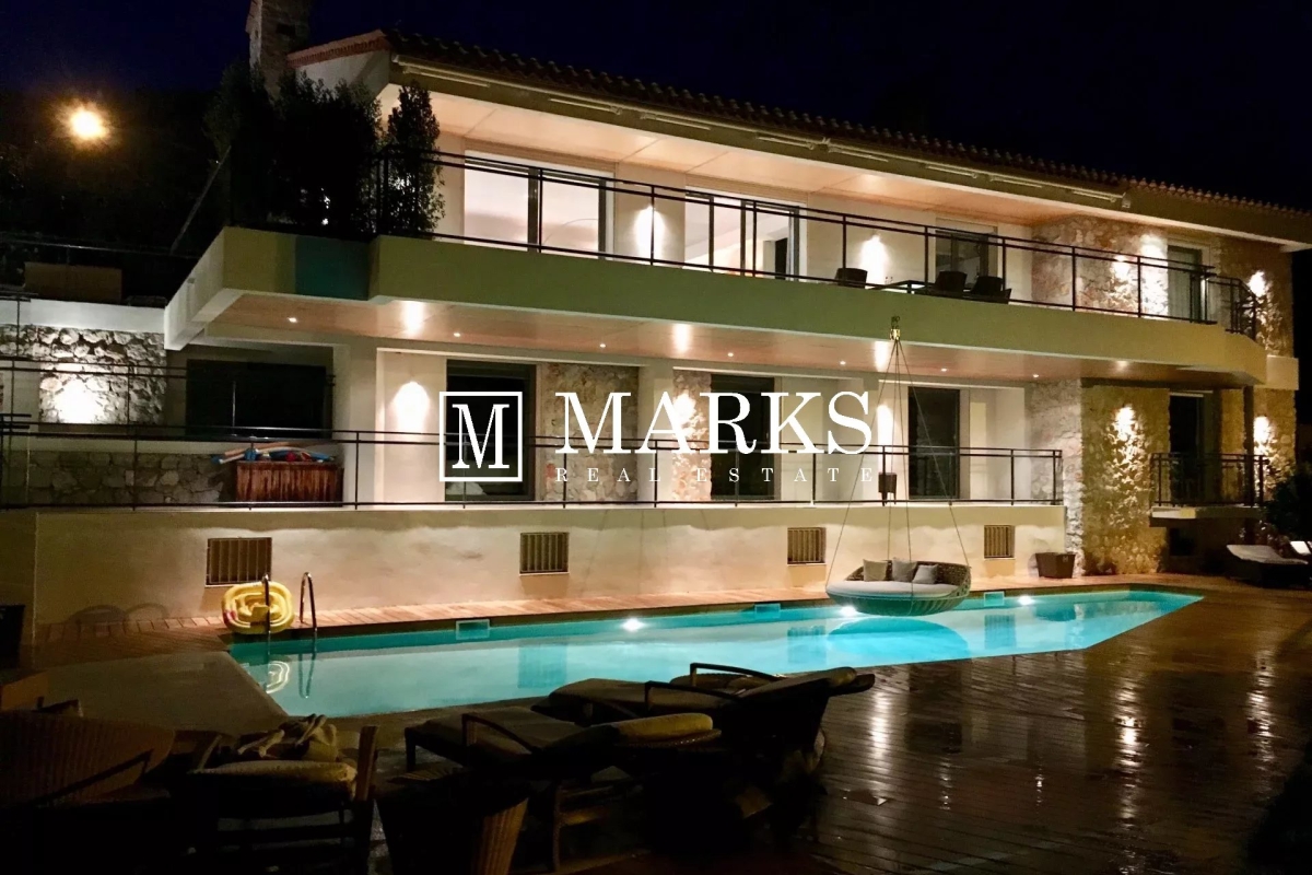 Welcome to this contemporary 5 bedroom, 6 bathroom villa with high ceilings and a breathtaking sea view located next to the Four Seasons Grand Hotel du Cap Ferrat. Decorated & furnished by a French designer. You will enjoy the heated swimming pool, with a cozy swing above. The property is very well located, so you would benefit from sunshine the whole day. Luxury bed linen and towels are provided. Daily housekeeping service is included. The space Villa of 500 sqm is composed of Main floor: Entrance hall, very spacious living and dining area, open kitchen with a sleek bar, guest toilet, master bedroom with walk in closet and massive bathroom. Large terrace with sea view. -1 floor: 1 bedroom with its own saloon, dressing and spacious bathroom. 2 bedrooms with dressing and spacious bathroom. -2 floor: 1 bedroom with shower & toilet, gym, sauna, bathroom, laundry room, wine cellar, garage for two cars. Every room in the house has a sound system, motorized drapes and air conditioner. LOCATION: Villa is located on a residential street. 5 min walk to the Four Seasons Grand Hotel du Cap Ferrat. 10 min walk to the sea. 15 min by foot to get to the Village 20 min by foot to the beach. By car, only 15 min from Monaco, and 30 min from Nice Airport. SAFETY: The neighborhood is extremely safe. House is equipped with sophisticated alarm & security cameras. Contact: +33603049355.