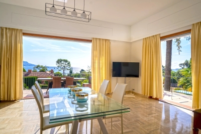 Charming Provençal villa of approximately 290 sq m and 1,500 sq m of garden. The villa has six double bedrooms, which can accommodate up to twelve people, a pleasant living-dining room, a separate kitchen as well as beautiful terraces offering a sea view, a heated swimming pool and a summer kitchen. Outdoor parking. Contact: +33493550000.