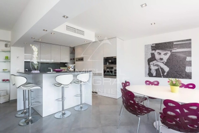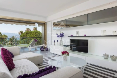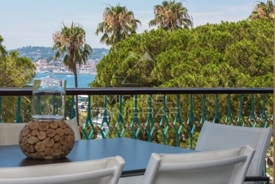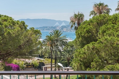 Idéalement situé, bel appartement sur la Croisette de 105 m² environ, comprenant : un séjour avec accès terrasse et vue mer, une cuisine équipée, deux chambres en suite avec salle d'eau. Parking. Numéro d'enregistrement : 06029001198AV