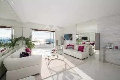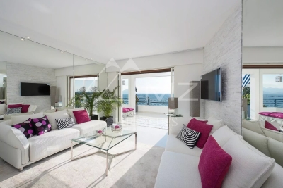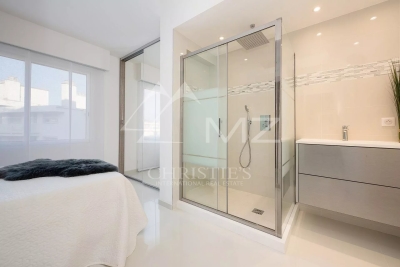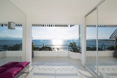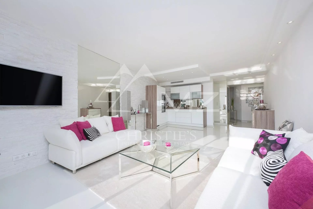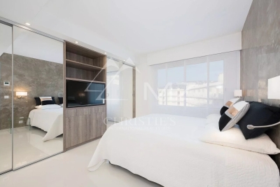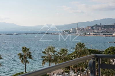 Sur la Croisette et proche du Palais des festivals, ce superbe appartement en étage élevé d'environ 85m² comprend: une cuisine ouverte avec séjour et accès terrasse, deux chambres en suite avec salle d'eau. N° de déclaration : 06029004262SB