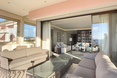 Dans une résidence située sur la Croisette en face du Port Canto, superbe appartement de 170m² avec de luxueuses prestations. Il est composé d'une grande entrée, d'une cuisine toute équipée, ouverte sur une salle à manger et un grand séjour s'ouvrant sur la terrasse de 20m² avec vue mer. L'appartement est composé d'une chambre de maître avec salle de bain/douche/wc, puis de deux autres chambres avec salle de douche/wc, une buanderie, ainsi qu'un wc invité avec lave main. Climatisation. Garage. Prestations luxueuses. LOCATION SAISONNIÈRE (06029020110AK) Contact: +33609067234.