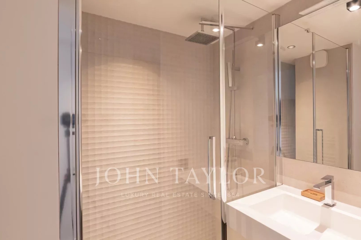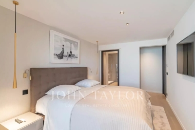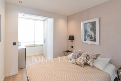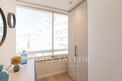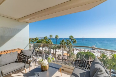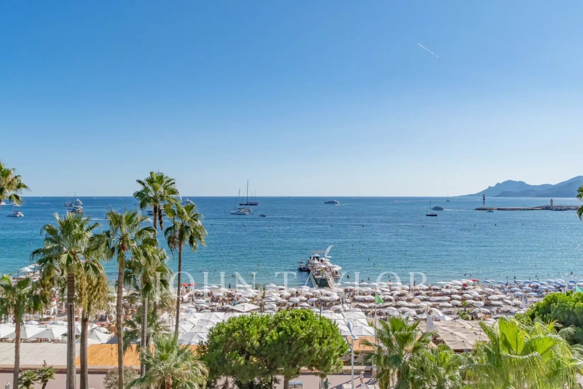 Bel appartement climatisé situé au cœur de la Croisette au 5ème étage d'une résidence de standing, jouissant d'une vue panoramique magnifique sur la Baie de Cannes, ses plages, le Palais des Festivals, et l'Estérel. D'une superficie d'environ 92 m², l'appartement est exposé Sud et comprend : Hall d'entrée Salon / salle à manger (TV) s'ouvrant sur terrasse Cuisine ouverte entièrement équipée Toilettes invités Trois chambres ensuite avec TV, dressing et salle de douches (deux sont équipées de toilettes) Equipement : climatisation – WI FI