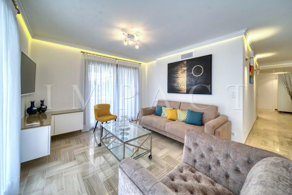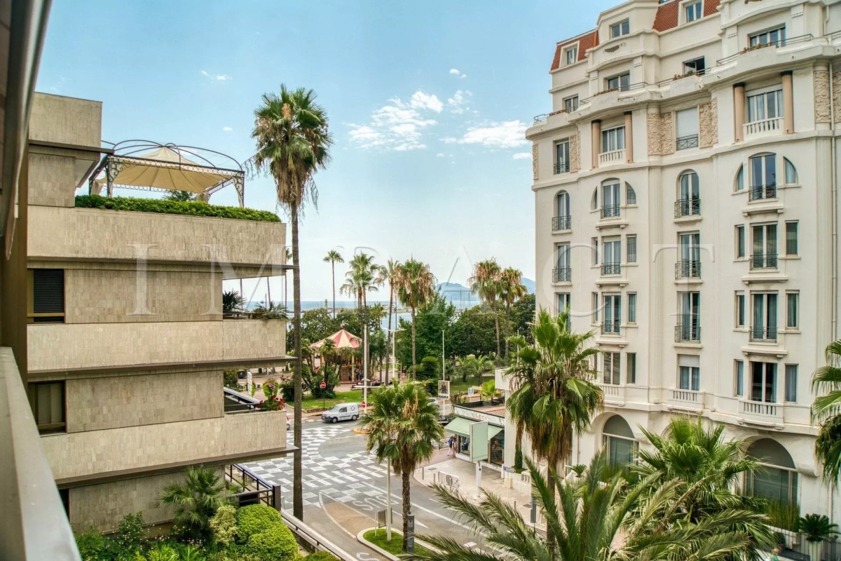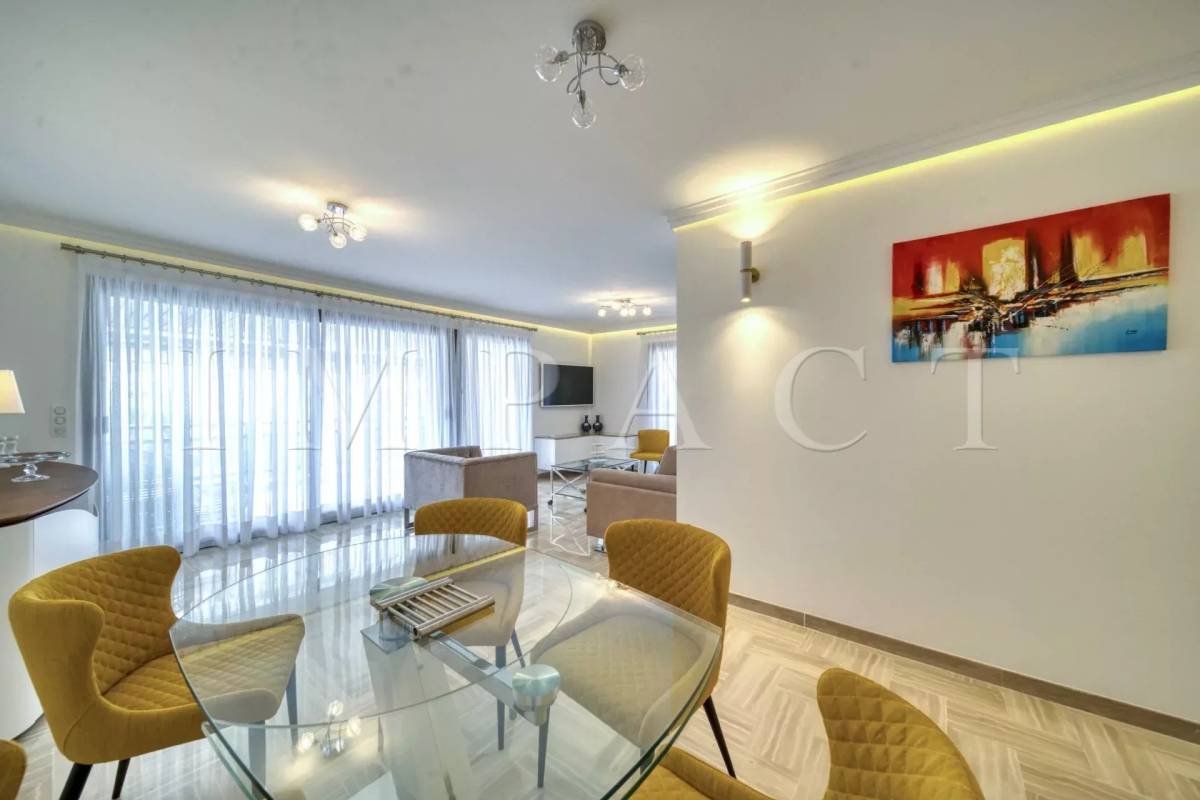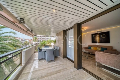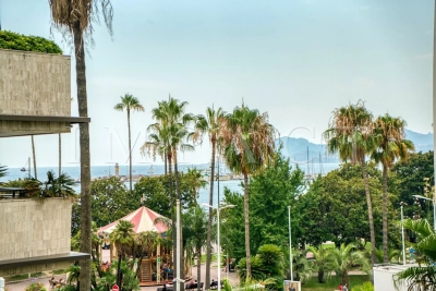 Résidence de standing Gray D'Albion, Centre Ville de Cannes. Superbe appartement de 87m² avec grande terrasse de 27 m² exposée Ouest offrant vue sur la ville de Cannes et sur la mer. La terrasse, très agréable, est équipée d'un coin salle-à-manger et d'un coin salon d'été équipés pour 6. Entrée dans l'appartement avec toilettes invités. Grand séjour tout équipé avec canapé méridienne, table basse, télévision écran plat et ouvrant sur la terrasse. Salle-à-manger ouverte sur le séjour et équipée pour 6 personnes. Cuisine ouverte tout équipée avec réfrigérateur / congélateur, plaque à induction, four, micro-onde, lave-vaisselle, bouilloire, machine à café Nespresso, grille-pain, lave-linge, sèche-linge et placards de rangement. Chambre maître : ouverte sur la terrasse Ouest et équipée de 2 lits simples 1000x200cm, une télévision et un placard. Salle-de-bain en suite avec baignoire, lavabo à double vasque, chauffe-serviette et toilettes. Chambre 2 : ouverte sur la terrasse Ouest et équipée de 1 lit double 160x200cm et un placard. Salle-de-douche en suite avec lavabo et douche. Autres prestations : Air conditionné WIFI Ascenseur Gardien 24/7 Equipé pour : 4 personnes Contact: +33658270230.
