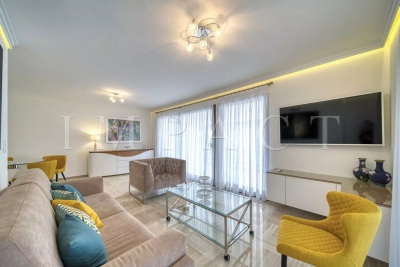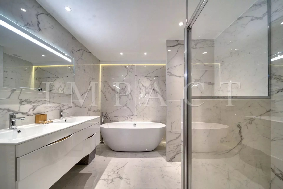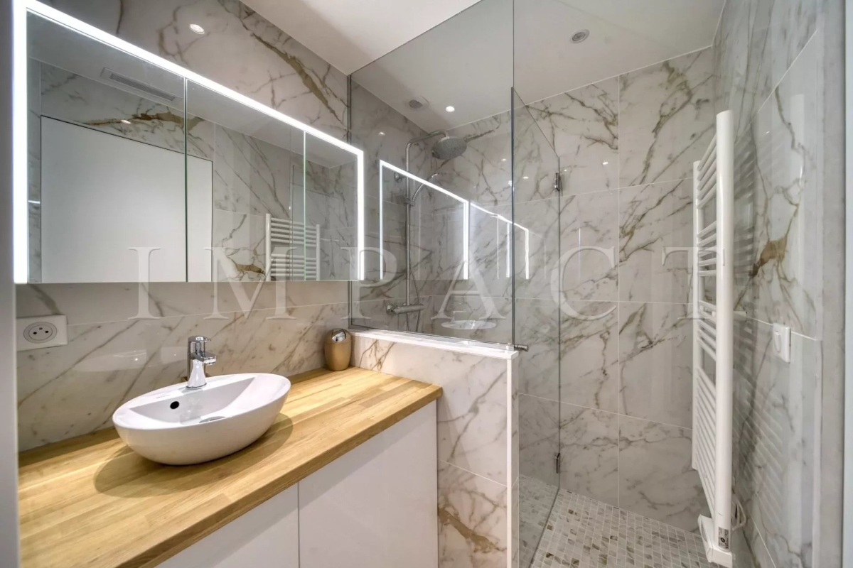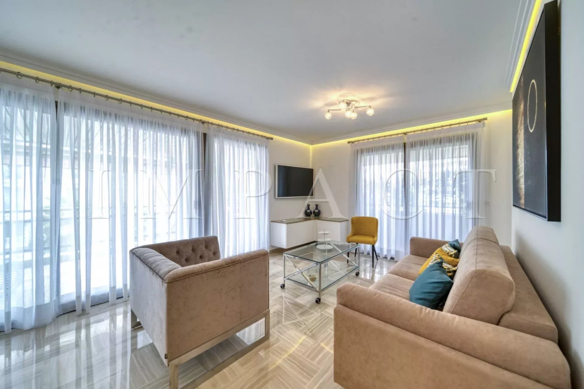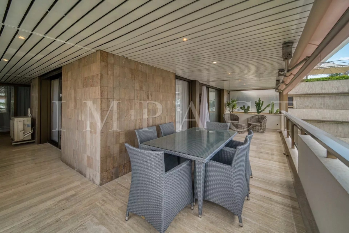 Résidence de standing Gray D'Albion, Centre Ville de Cannes. Superbe appartement de 87m² avec grande terrasse de 27 m² exposée Ouest offrant vue sur la ville de Cannes et sur la mer. La terrasse, très agréable, est équipée d'un coin salle-à-manger et d'un coin salon d'été équipés pour 6. Entrée dans l'appartement avec toilettes invités. Grand séjour tout équipé avec canapé méridienne, table basse, télévision écran plat et ouvrant sur la terrasse. Salle-à-manger ouverte sur le séjour et équipée pour 6 personnes. Cuisine ouverte tout équipée avec réfrigérateur / congélateur, plaque à induction, four, micro-onde, lave-vaisselle, bouilloire, machine à café Nespresso, grille-pain, lave-linge, sèche-linge et placards de rangement. Chambre maître : ouverte sur la terrasse Ouest et équipée de 2 lits simples 1000x200cm, une télévision et un placard. Salle-de-bain en suite avec baignoire, lavabo à double vasque, chauffe-serviette et toilettes. Chambre 2 : ouverte sur la terrasse Ouest et équipée de 1 lit double 160x200cm et un placard. Salle-de-douche en suite avec lavabo et douche. Autres prestations : Air conditionné WIFI Ascenseur Gardien 24/7 Equipé pour : 4 personnes Contact: +33658270230.