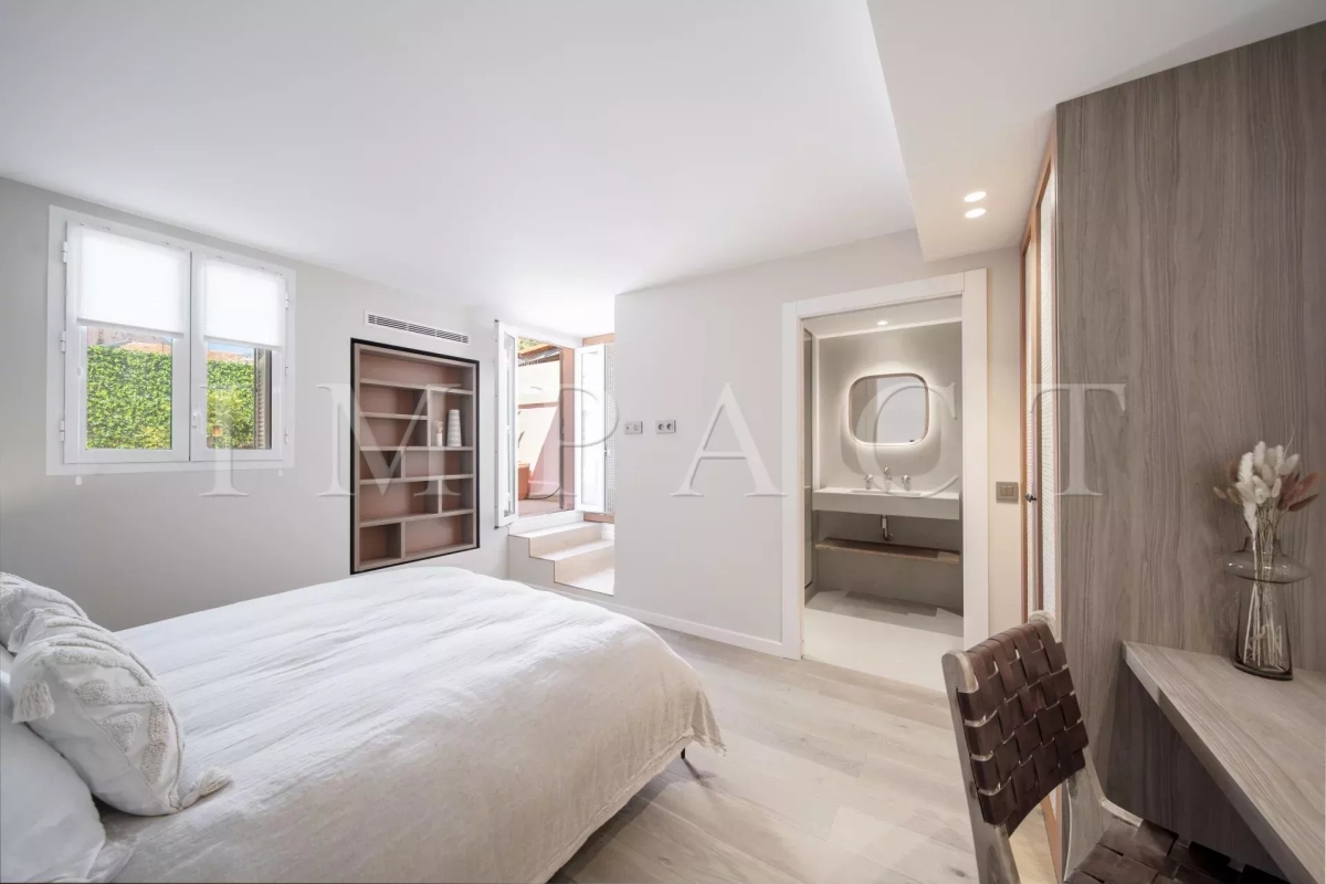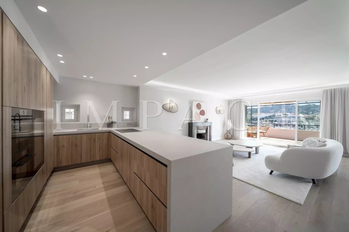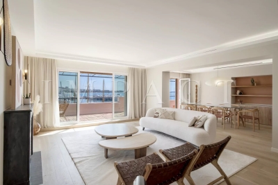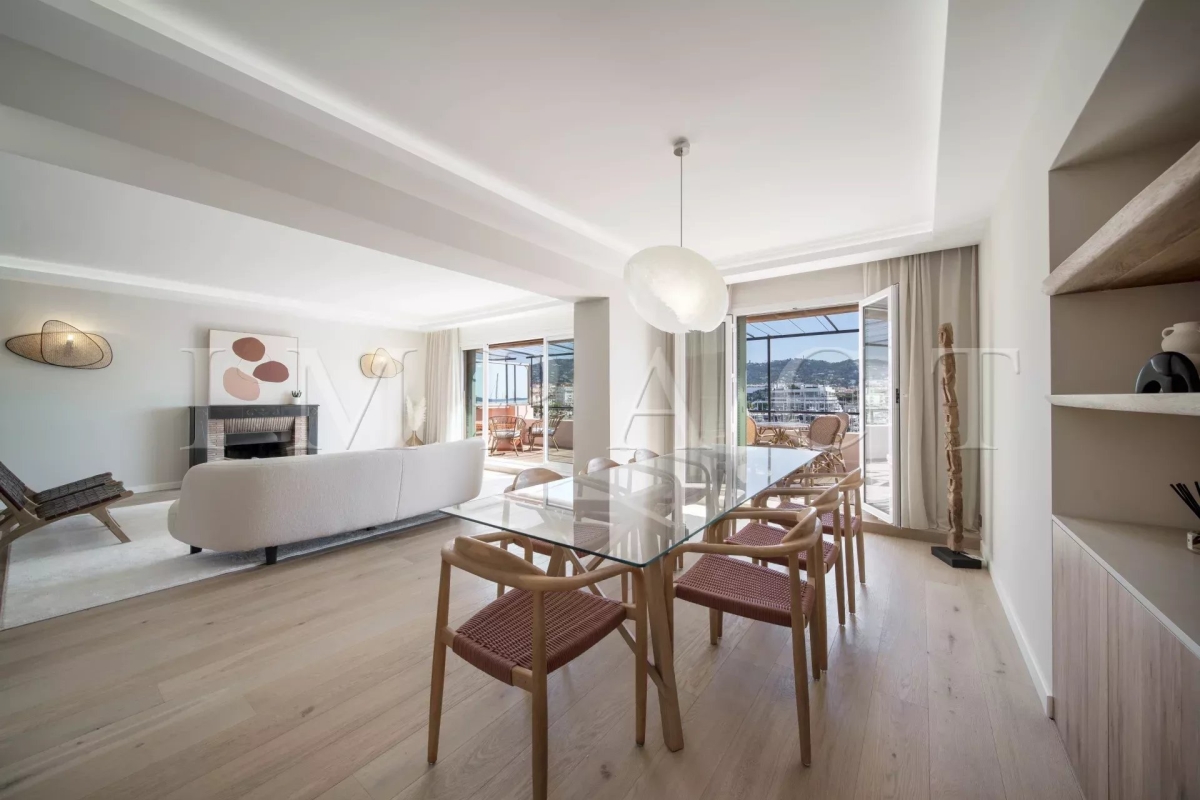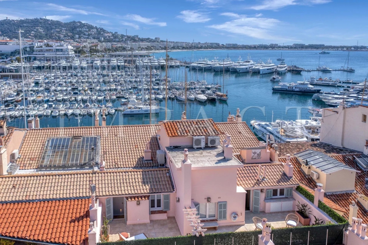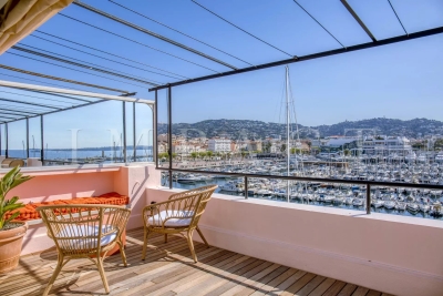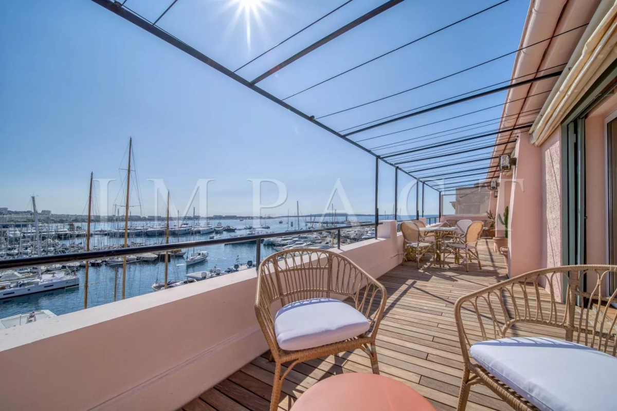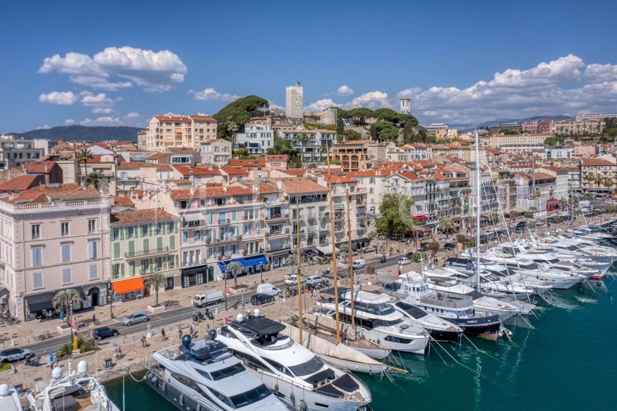 Idéalement situé face au Vieux Port, avec vue mer panoramique sur la Baie de Cannes et les îles de Lérins. Exceptionnel et spacieux appartement penthouse traversant 5 pièces de 150 m². Terrasse de 30 m² côté Est sur "Le Vieux Port" + terrasse de 58 m² côté Ouest sur le centre historique. Descriptif Hall d'entrée, toilettes invités. Beau double salon s'ouvrant sur la terrasse exposée Sud-Est face à la mer. Cuisine ouverte entièrement équipée : Four, micro-onde, plaques de cuisson, frigo, réfrigérateur, machine à café. Chambre de maître sur terrasse vue mer, avec dressing, salle de bains (douche, baignoire, toilettes). 2 chambres ensuite, 2 salles de douches, 2 toilettes. Autres prestations : Wi-Fi, climatisation. Equipé pour 6 personnes. Contact: +33658186330.