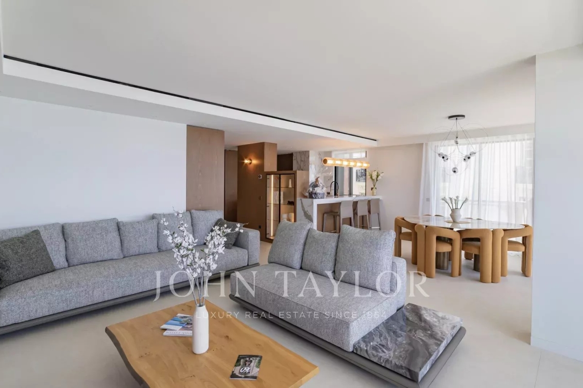 Découvrez un véritable bijou d'appartement niché au 5eme étage d'une résidence prestigieuse sur la Croisette, voisine de l'emblématique hôtel Carlton. Ce spacieux appartement d'angle de 150 m², avec accès direct par l'ascenseur, incarne l'élégance et le raffinement, offrant une expérience incomparable sur la Côte d'Azur. Une double réception baignée de lumière comprend un salon raffiné, une salle à manger accueillante et une cuisine américaine contemporaine parfaitement équipée. Ces espaces de vie s'ouvrent sur une terrasse généreuse, offrant une vue à couper le souffle sur la baie de Cannes, idéale pour admirer le panorama en toute quiétude. Entièrement neuf, cet appartement a été conçu avec des matériaux d'exception et des finitions de haute qualité, pensés et réalisés par un architecte de renom. Le style raffiné et les détails minutieux confèrent à l'ensemble une atmosphère d'élégance et de sérénité absolue. Les trois chambres doubles somptueuses, chacune dotée de son propre dressing, de sa salle de bains privative et de toilettes, offrent un confort optimal et une intimité totale. Des toilettes invités ajoutent une touche de commodité supplémentaire. Un double garage fermé est inclus pour une tranquillité d'esprit totale. L'appartement bénéficie de la climatisation réversible intégrée et d'un système domotique avancé, permettant une gestion optimale du confort intérieur en toutes saisons. Idéalement situé au cœur de la Croisette, cet appartement exceptionnel est le choix parfait pour des vacances de rêve ou un séjour professionnel, dans un cadre prestigieux et privilégié. LES ANIMAUX NE SONT PAS ACCEPTES