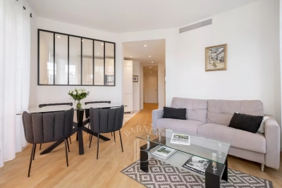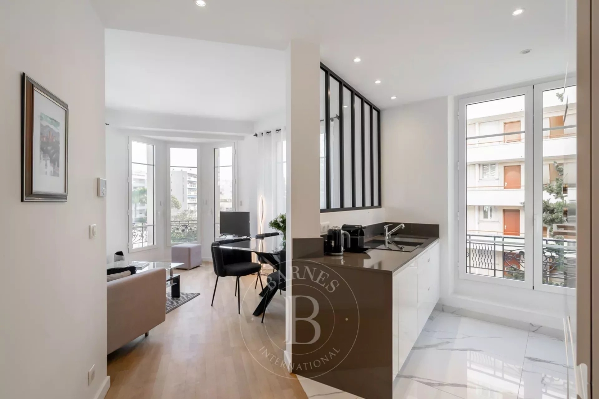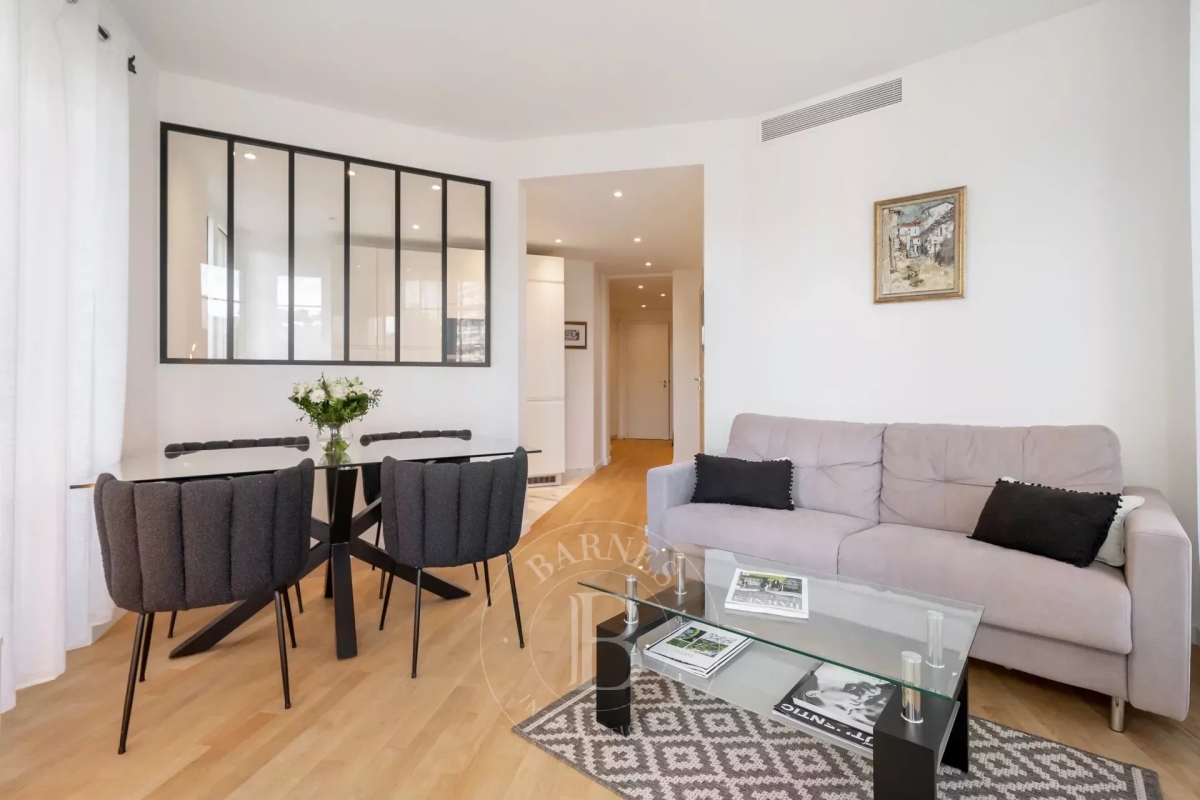 Idéalement situé à quelques pas du centre-ville, à proximité des plages et du Palais des Congrès, cet appartement contemporain séduit par son style moderne et son emplacement. Il offre un séjour lumineux, un espace salle à manger accueillant jusqu'à 4 personnes, une cuisine américaine entièrement équipée, ainsi que 2 chambres en suite, offrant chacune un confort exceptionnel et une intimité totale.