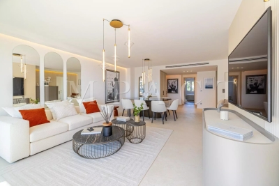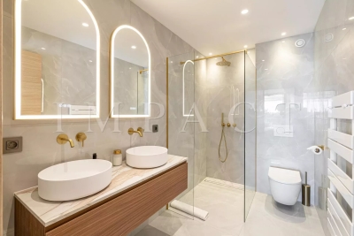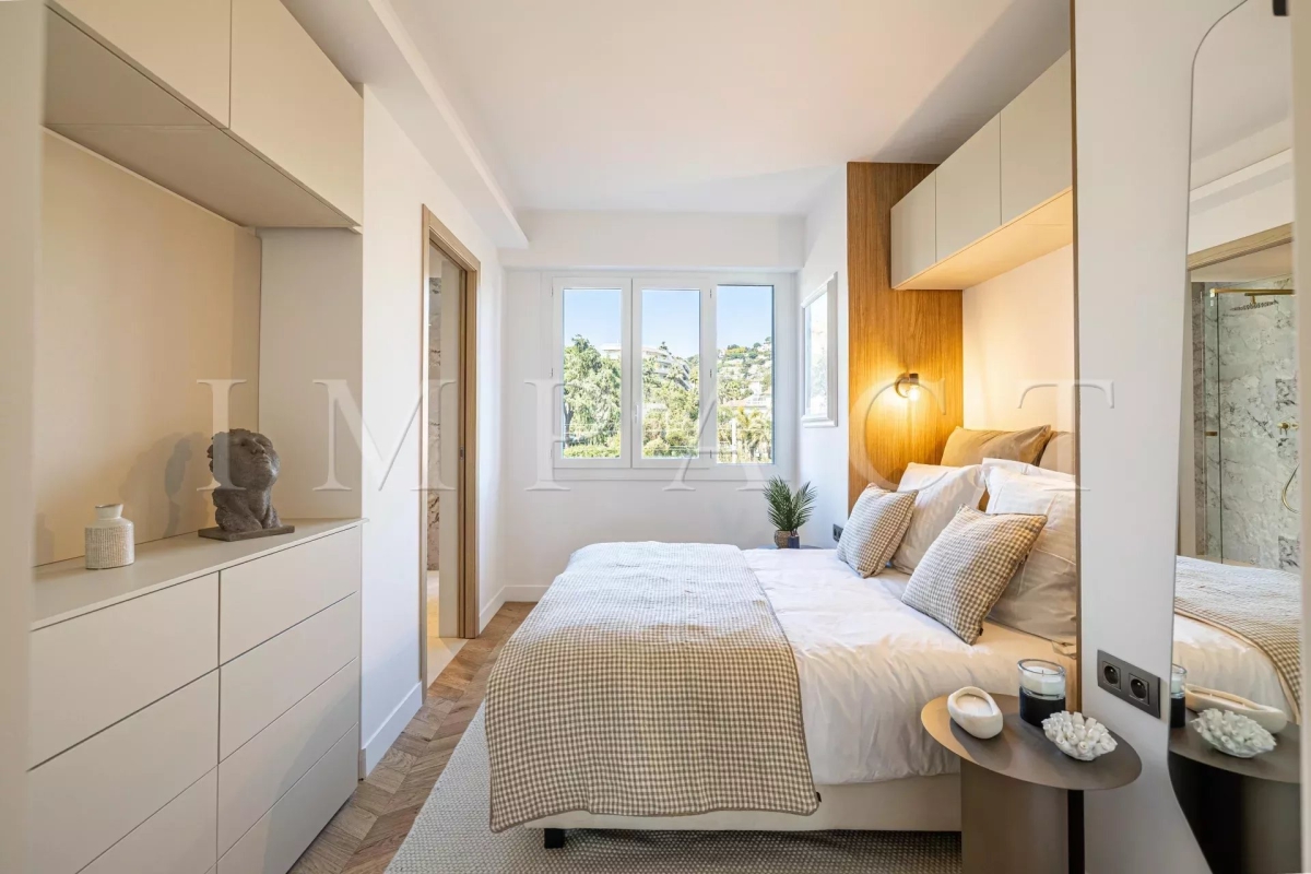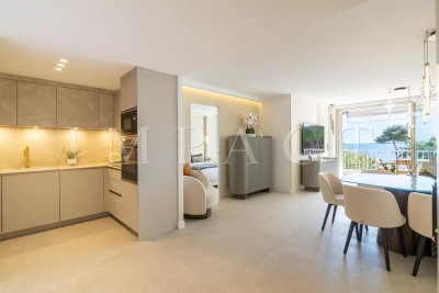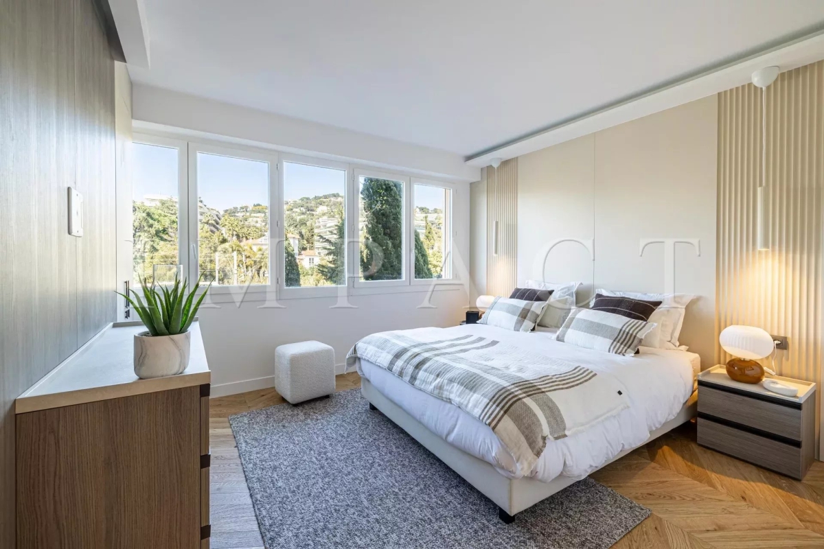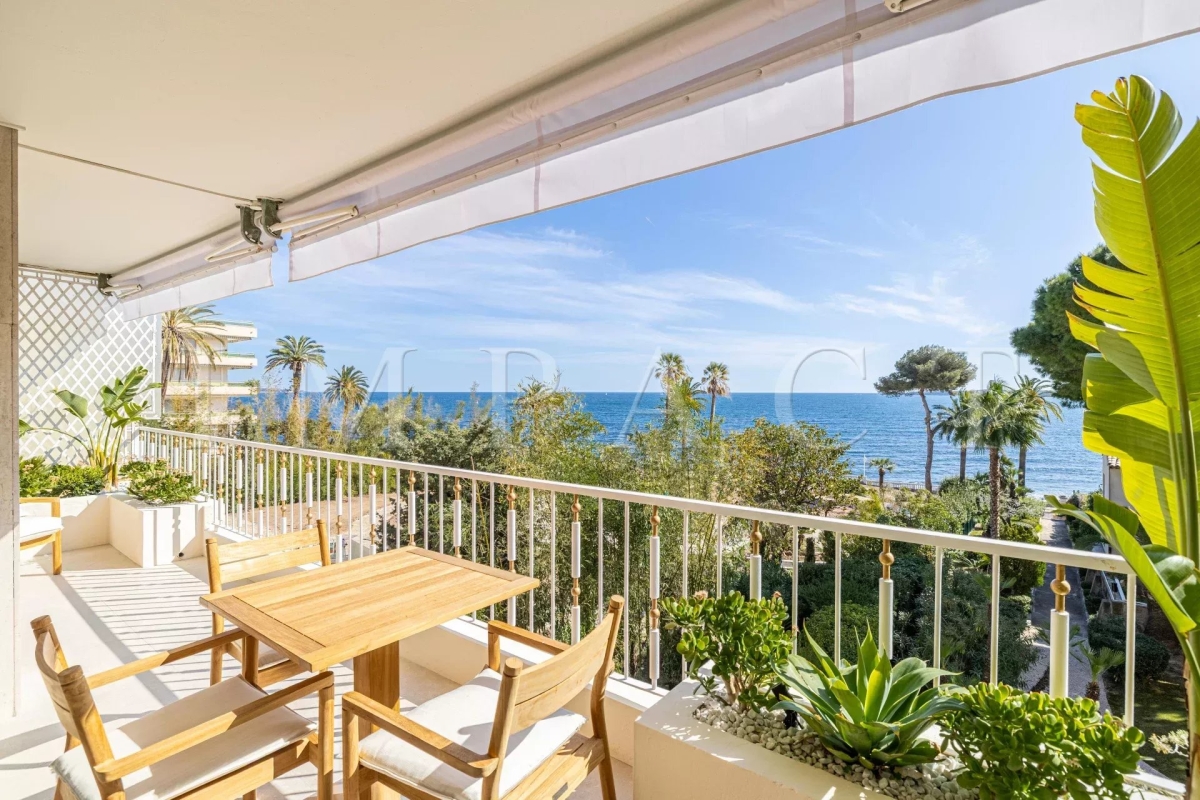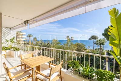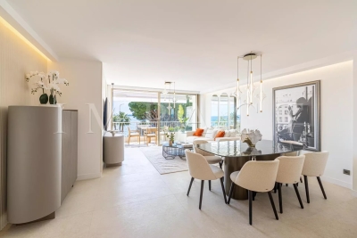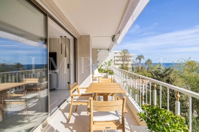 Location saisonnière - Appartement rénové vue mer Découvrez cet élégant appartement de 4 pièces de 102 m², situé dans le quartier très recherché du Palm Beach. Ce bien bénéficie d'un emplacement exceptionnel avec un accès direct à la mer depuis la copropriété. L'appartement se compose d'un vaste séjour/salle à manger équipée pour 6 personnes, une cuisine ouverte entièrement équipée, ainsi que de trois chambres en suite, chacune dotée de sa propre salle d'eau attenante. Vous profiterez également d'une terrasse de 22 m² offrant une vue imprenable et panoramique sur la mer. Autres prestations : Wi-Fi, climatisation. Equipé pour 6 personnes.