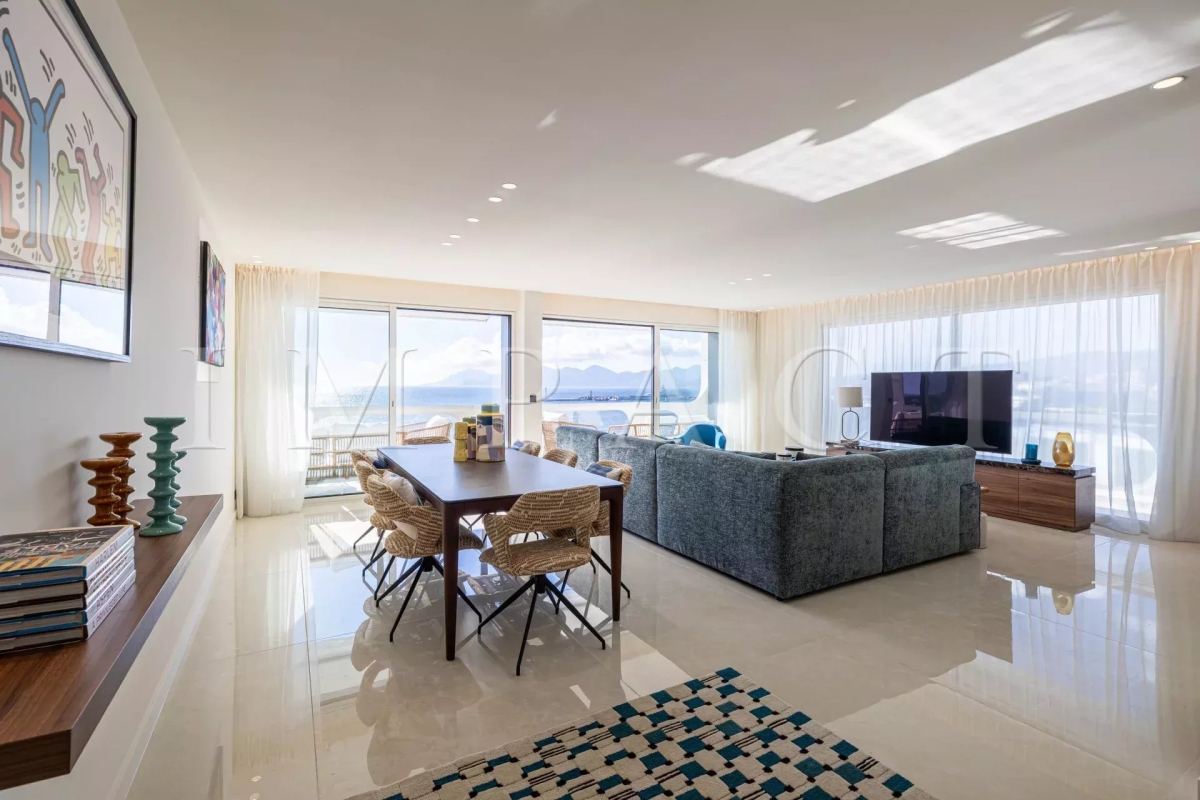 Location saisonnière - Appartement rénové vue mer panoramique Idéalement situé sur la célèbre Croisette, à deux pas des boutiques, restaurants et plages, cet appartement se trouve dans une résidence de standing sécurisée au 7ème étage, avec gardien. Entièrement rénové à neuf, il offre une surface habitable de 30 m² et s'ouvre sur un grand balcon avec une vue imprenable sur la mer. Il se compose d'un hall d'entrée, d'un vaste séjour lumineux, d'une cuisine entièrement équipée, de trois chambres, de trois salles de bains et de quatre toilettes. Deux places de parking complètent ce bien d'exception. Autres prestations : Wi-Fi, climatisation. Equipé pour 6 personnes. Contact: +33628933780.
