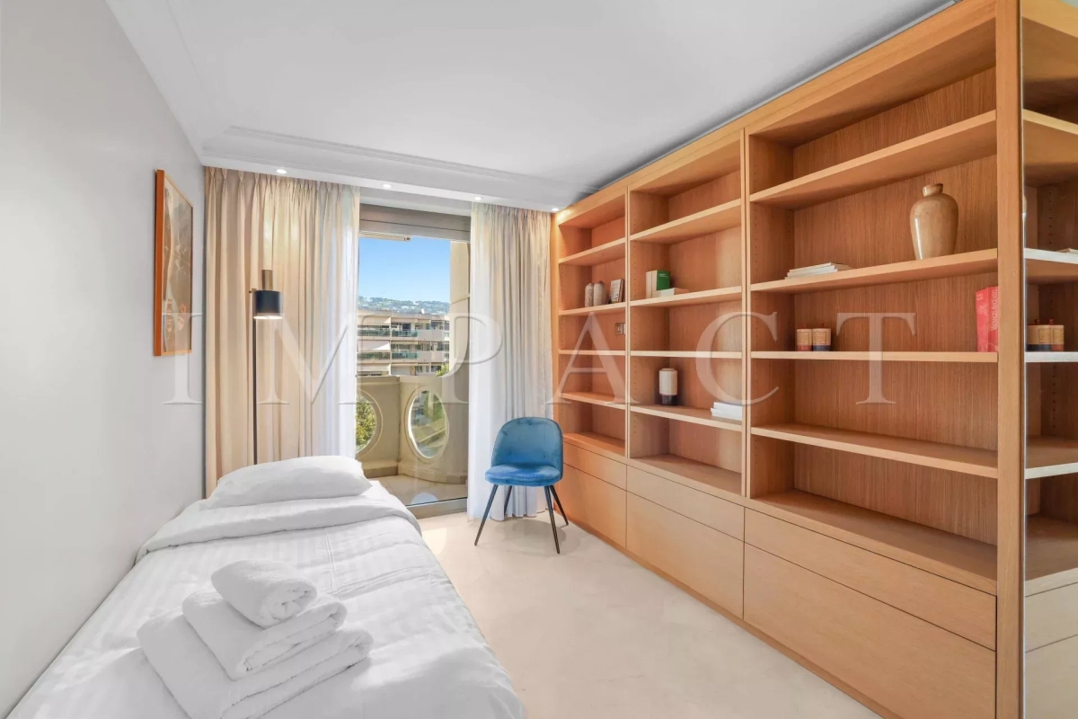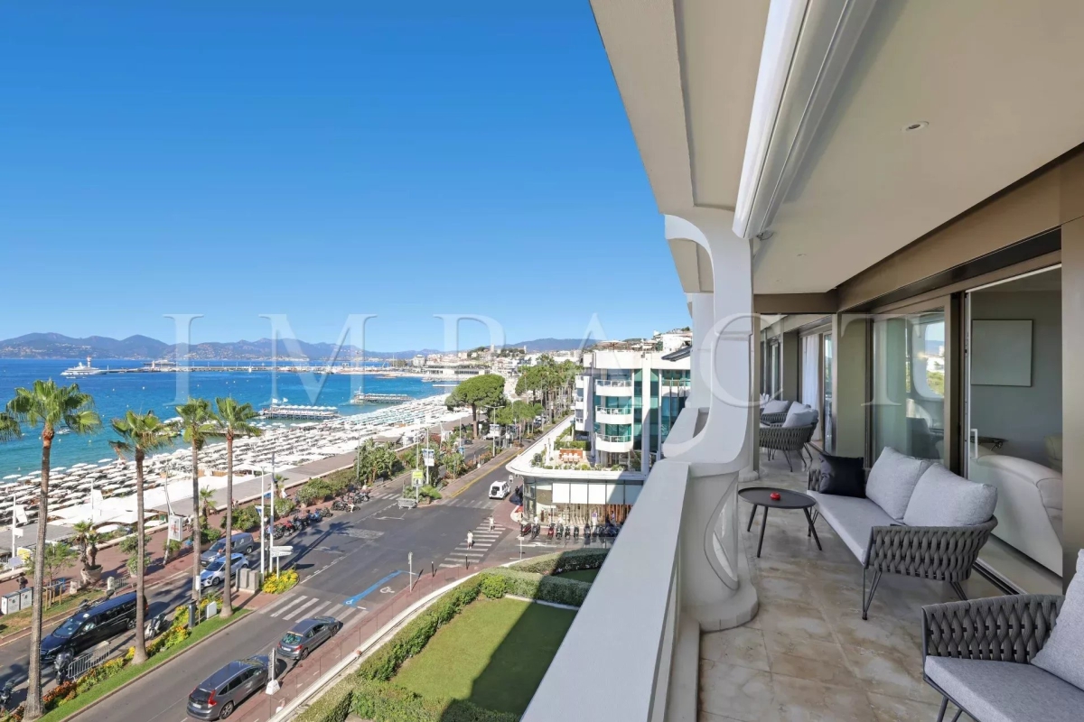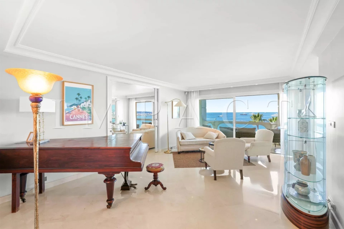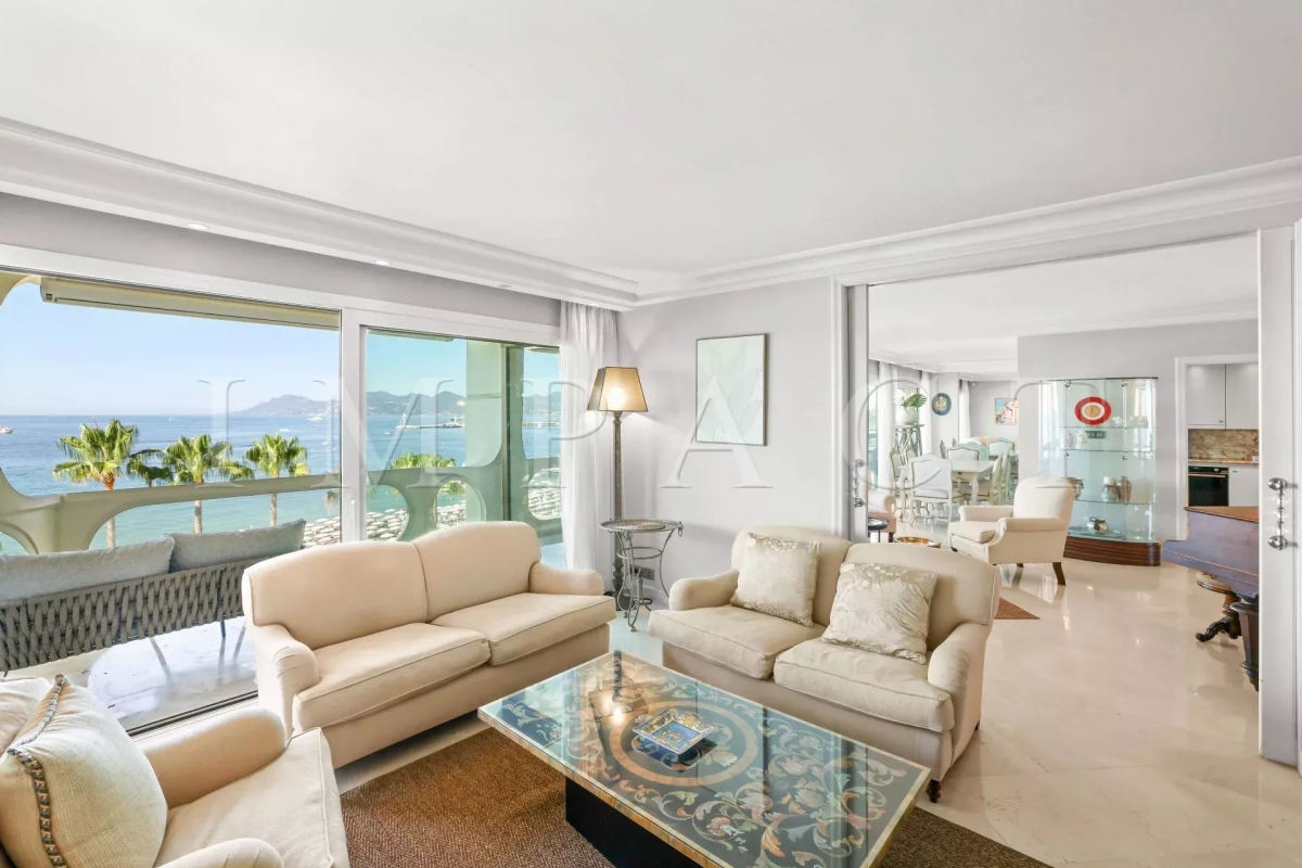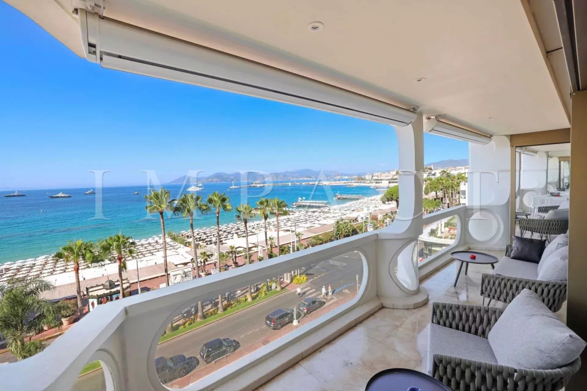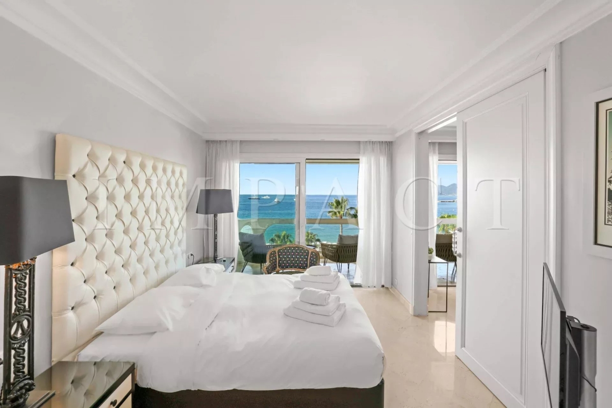 Location saisonnière - Appartement front de mer Spacieux appartement de 185 m² idéalement, situé sur la Croisette, à deux pas des plages privées, des boutiques de luxe et des bonnes tables. Vue panoramique sur la mer, les îles de Lérins & le Massif de l'Estérel. Entrée, bureau avec rangement. Toilettes invités. L'appartement dispose d'un vaste séjour avec assise 8 personnes + télévision murale. Accès terrasse vue mer. 2ème salon avec piano à queue. Salle à manger 8 personnes. Cuisine entièrement équipée ouverte avec four, micro-onde, lave vaisselle Mielle. Arrière cuisine avec frigo américain, toilettes invitées. Chambre n°1, s'ouvrant sur la terrasse Sud vue mer : Lit double 160cm, télévision, salle de douche ensuite avec toilette séparé. Chambre n°2, s'ouvrant sur la terrasse Nord : Lit double 160cm, dressing, salle de douche, toilette. Chambre n°3, s'ouvrant sur la terrasse Nord : 2 lits simples 2x90cm, salle de douche, toilette. Chambre n°4, s'ouvrant sur la terrasse Nord : 2 lits simples 2x90cm, bureau, salle de douche, toilette. Chambre n°5 : Lit simple 90cm, salle de douche, toilette. Autres prestations : Wi-Fi, climatisation, garage, 2 places de parking. Equipé pour 8 personnes. Contact: +33778826164.