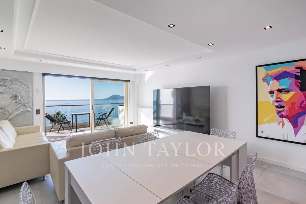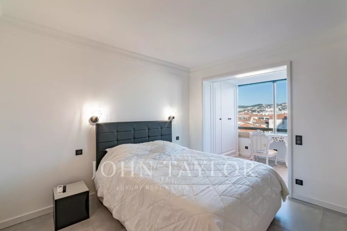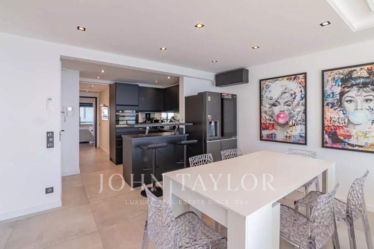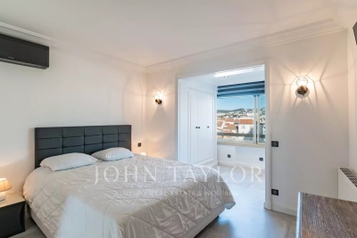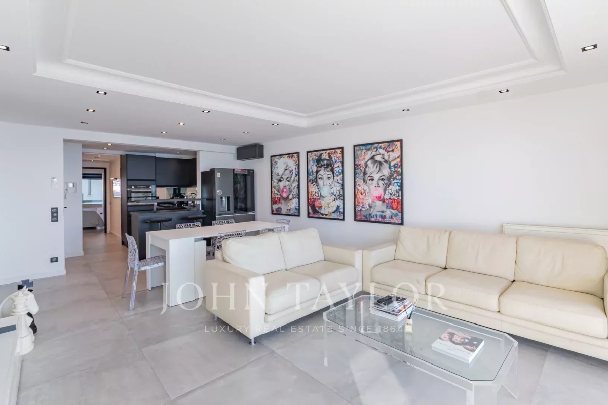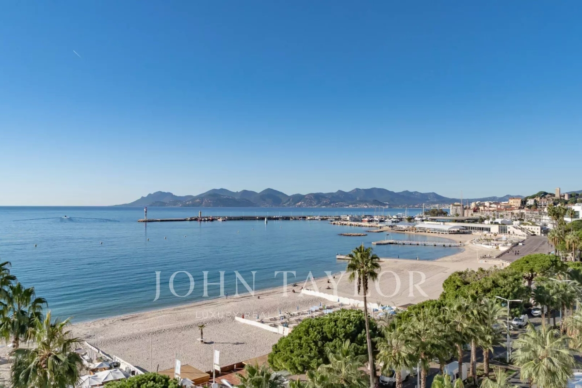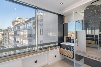 Situé à l'avant-dernier étage d'une résidence de prestige sur la Croisette, cet appartement de 107 m² Loi Carrez offre une magnifique vue panoramique sur la mer, la baie de Cannes et l'Estérel. Il comprend un séjour avec cuisine ouverte donnant sur une terrasse exposée plein sud, offrant une vue imprenable, ainsi que trois chambres en suite avec salle de douche. La résidence est sécurisée et dispose d'un service de gardiennage.