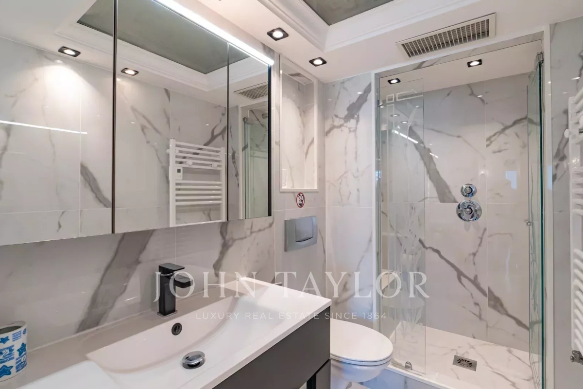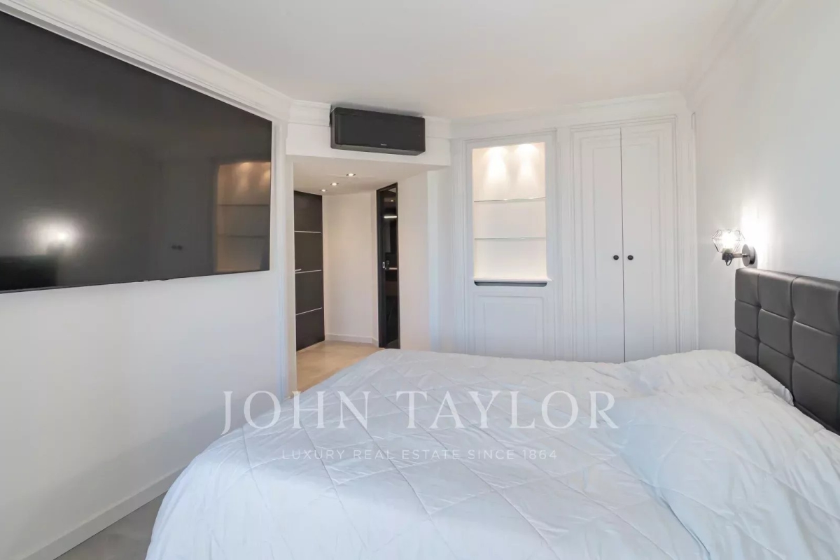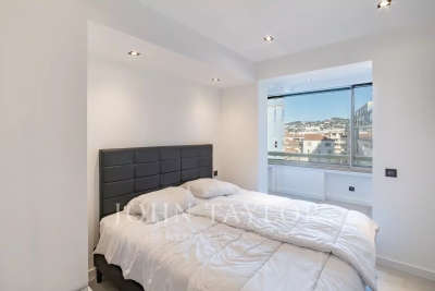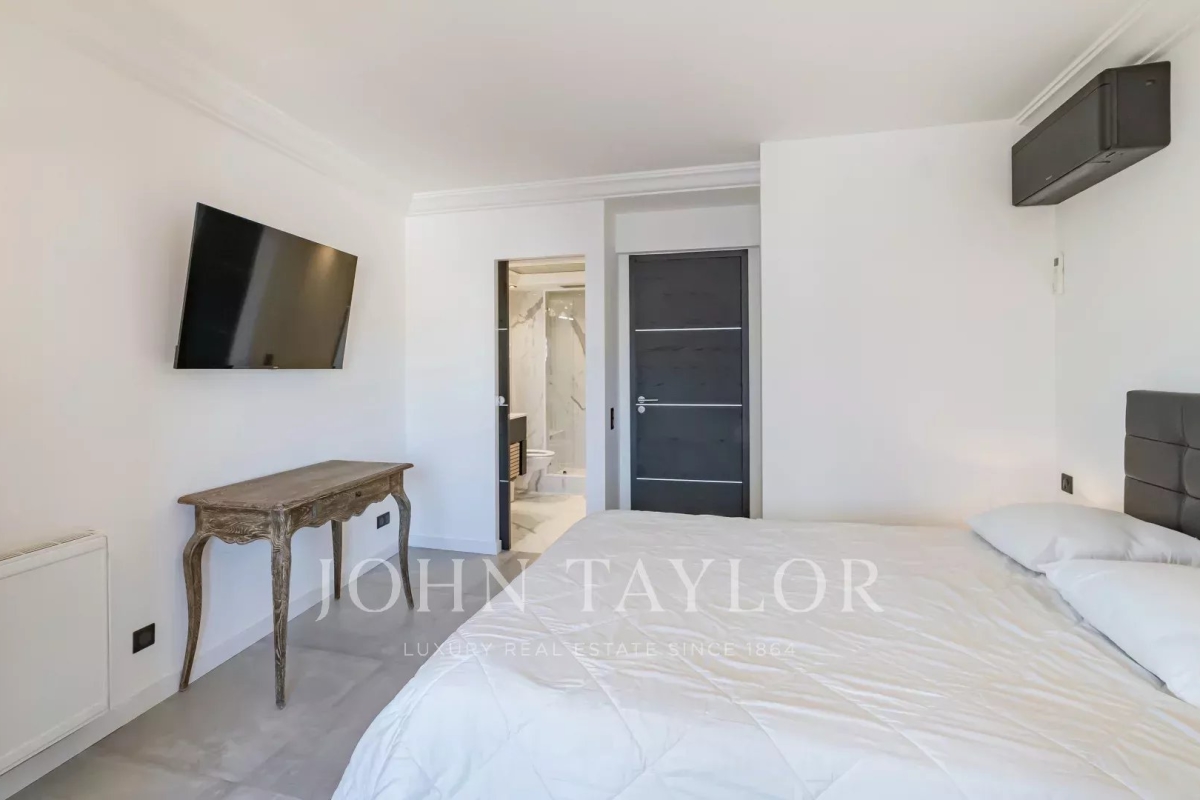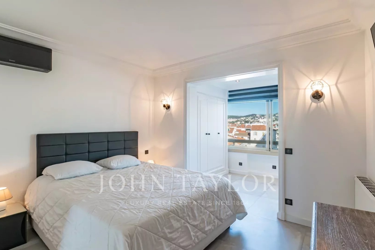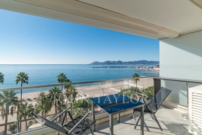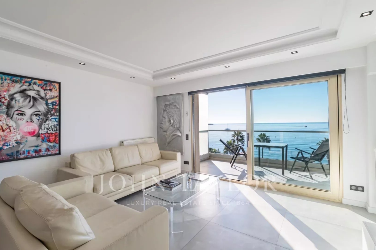 Situé à l'avant-dernier étage d'une résidence de prestige sur la Croisette, cet appartement de 107 m² Loi Carrez offre une magnifique vue panoramique sur la mer, la baie de Cannes et l'Estérel. Il comprend un séjour avec cuisine ouverte donnant sur une terrasse exposée plein sud, offrant une vue imprenable, ainsi que trois chambres en suite avec salle de douche. La résidence est sécurisée et dispose d'un service de gardiennage.