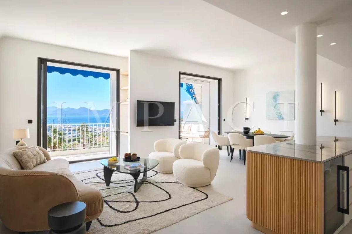 Profitez d'un séjour d'exception dans ce magnifique appartement contemporain de 99 m², entièrement rénové, situé dans une résidence de standing. Idéalement placé en face du Port Canto, il offre une vue mer panoramique à couper le souffle. L'appartement propose : - Un grand double séjour lumineux avec cuisine ouverte, donnant sur une agréable terrasse exposée Sud-Ouest, parfaite pour vos moments de détente au soleil. - 3 chambres en suite, chacune avec sa salle de bains/toilettes privée et son dressing, pour un confort optimal. - Une toilette invitée. Parfait pour des vacances en famille ou entre amis, cet appartement allie élégance, modernité et emplacement exceptionnel au cœur de la Croisette. Autres équipements : Wifi, Climatisation Equipée pour 6 personnes Contact: +33658186330.
