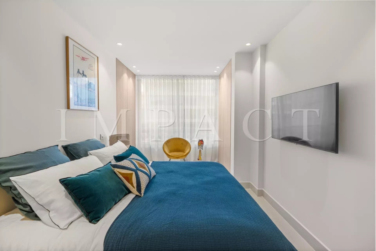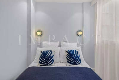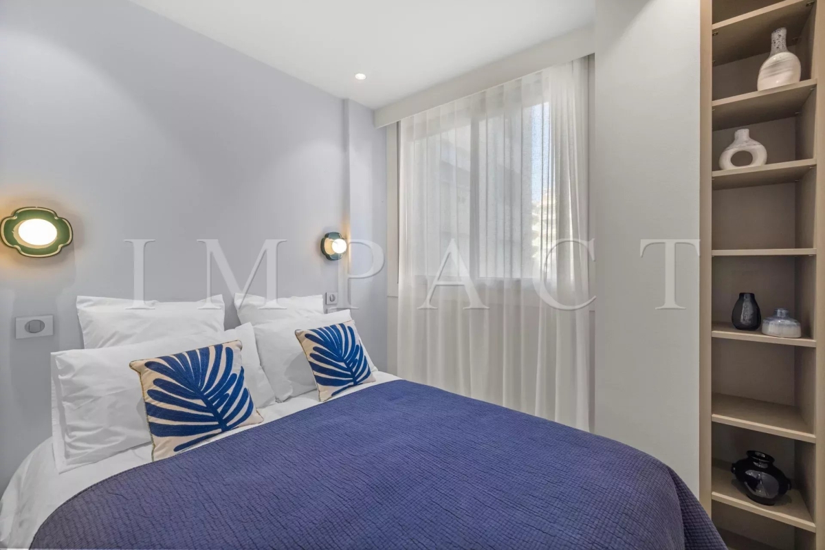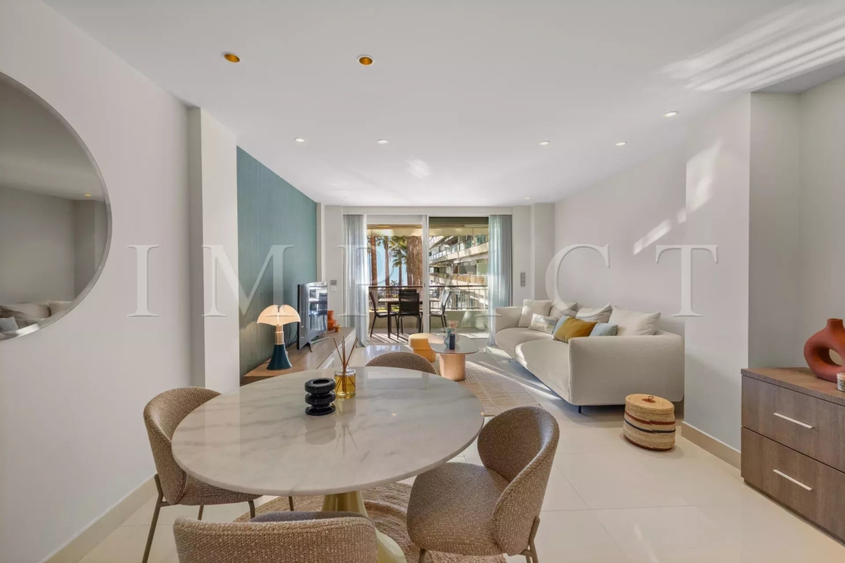 Appartement de 82 m² entièrement rénové avec des matériaux de qualité, offrant une très belle vue mer. Il se compose de deux chambres, chacune disposant de sa propre salle d'eau. La chambre principale bénéficie également de toilettes privatives, et un second WC est disponible dans l'appartement. L'espace de vie est lumineux et confortable, ouvert sur une terrasse de 9 m² permettant de profiter pleinement de l'extérieur. L'appartement est parfaitement adapté aussi bien aux séjours professionnels (congrès, festivals) qu'aux vacances en famille ou entre amis. Sa localisation permet de rejoindre facilement les plages, les commerces et le Palais des Festivals. Autres équipements : WIFI, Climatisation Equipé pour 4 personnes