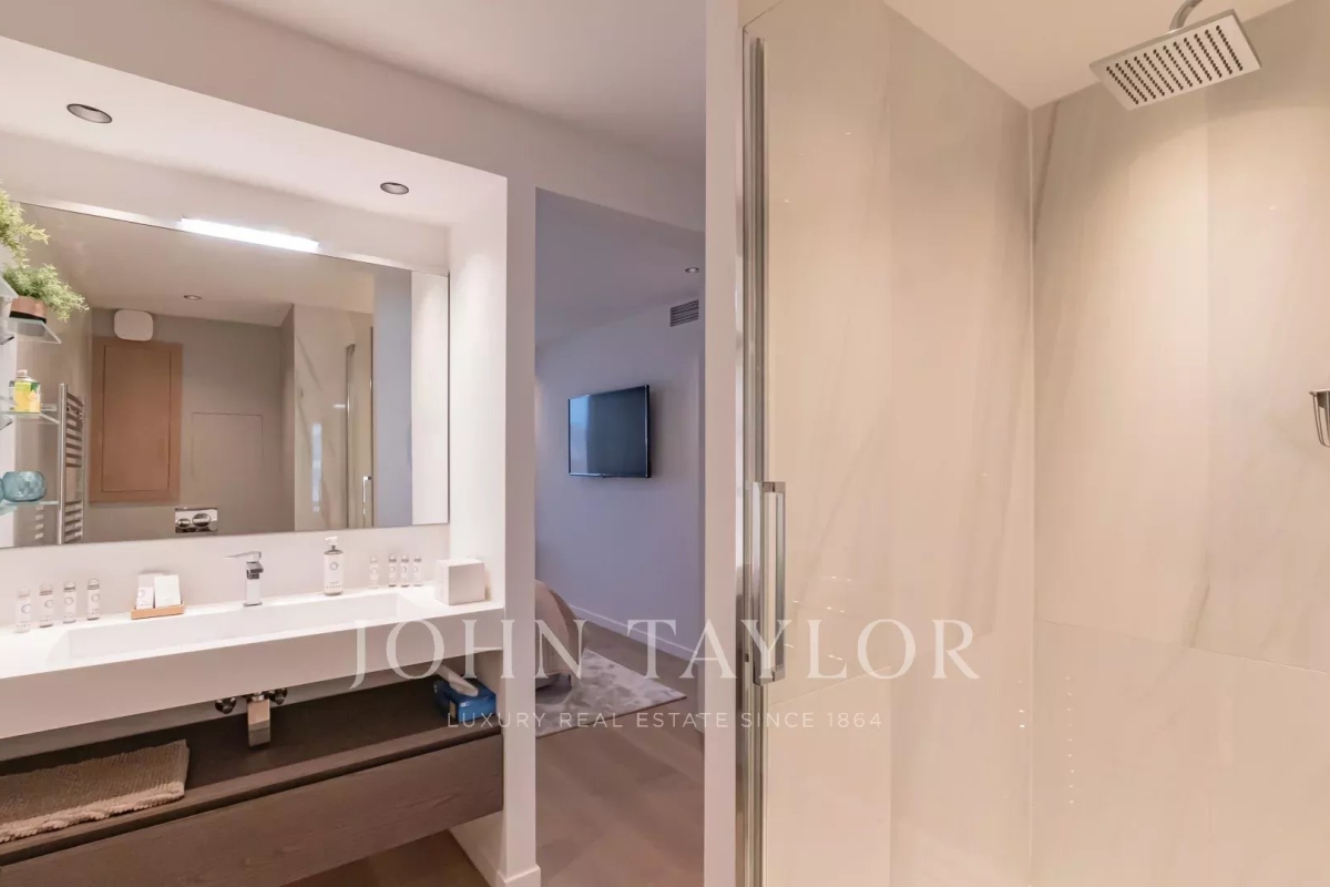 Sur la Croisette, à quelques pas du Palais des Festivals, profitez d'un séjour d'exception, proche de vos évènements professionnels. Une localisation unique pour des séjours événementiels réussis; bénéficiant du cadre idyllique de Cannes. Cet appartement offre toutes les prestations et le confort nécessaire afin d'organiser vos rendez-vous professionnels. Bel appartement climatisé situé au cœur de la Croisette au 5ème étage d'une résidence de standing, jouissant d'une vue panoramique magnifique sur la Baie de Cannes, ses plages, le Palais des Festivals, et l'Estérel. D'une superficie d'environ 92m², l'appartement est exposé Sud et comprend: Hall d'entrée Salon / salle à manger (TV) s'ouvrant sur terrasse Cuisine ouverte entièrement équipée Toilettes invités Trois chambres ensuite avec TV, dressing et salle de douches (deux sont équipées de toilettes) Equipement : climatisation – WI FI
