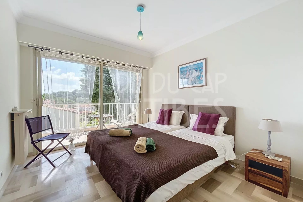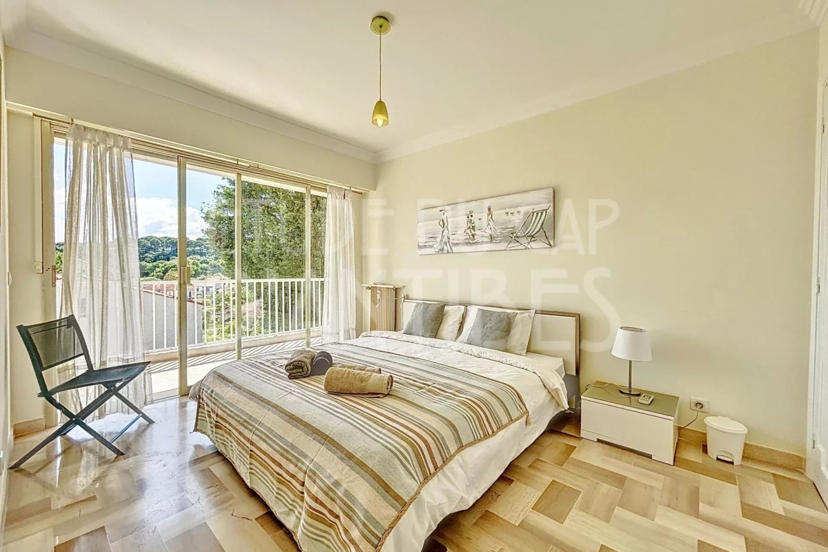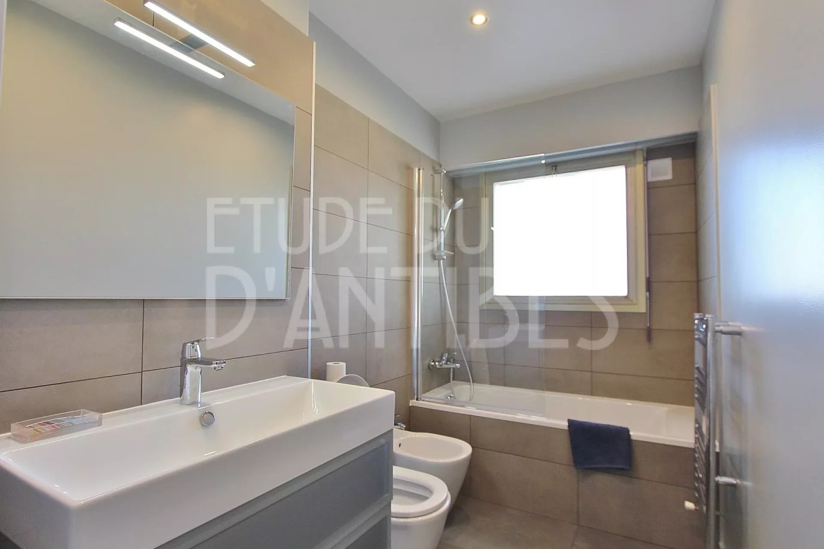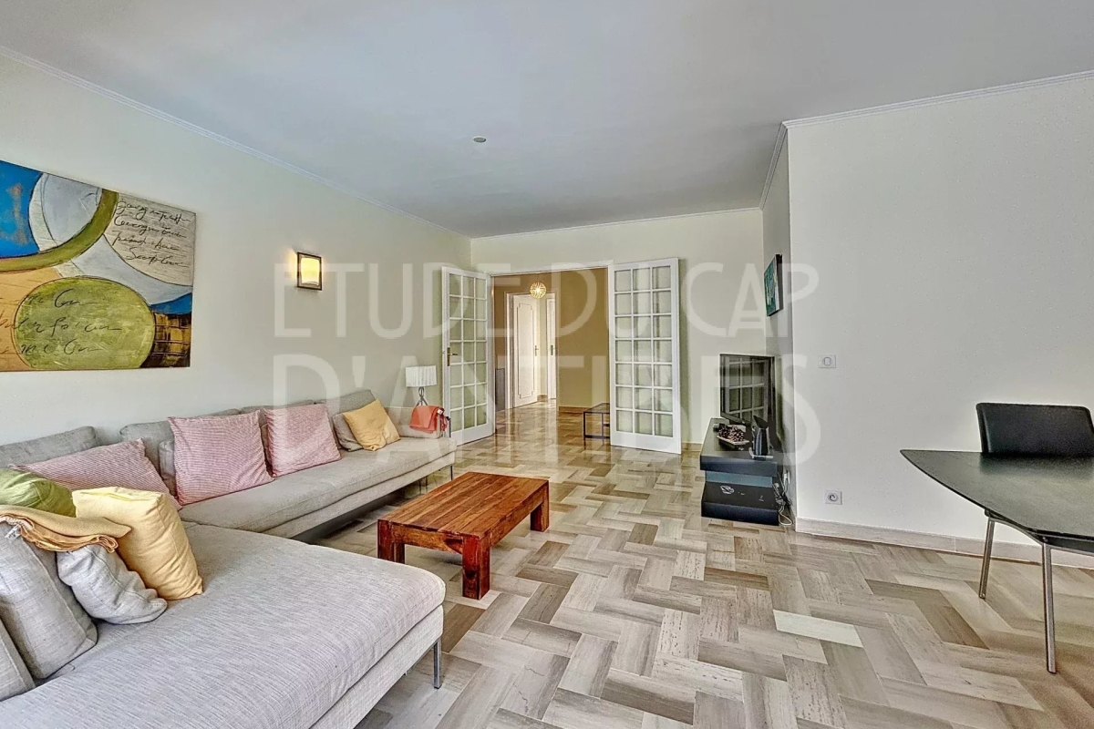 spacieux appartement 4 pièces situé dans une petite résidence au calme. L'appartement comprend 1 vaste séjour ouvert sur une large terrasse vue piscine, 1 cuisine entièrement équipée, 3 chambres à coucher (2 entre elles s'ouvrent sur une terrasse avec vue mer), 2 salles de bains ou douche. Air conditionné, place de parking pour 1 voiture, piscine dans la résidence§ internet.