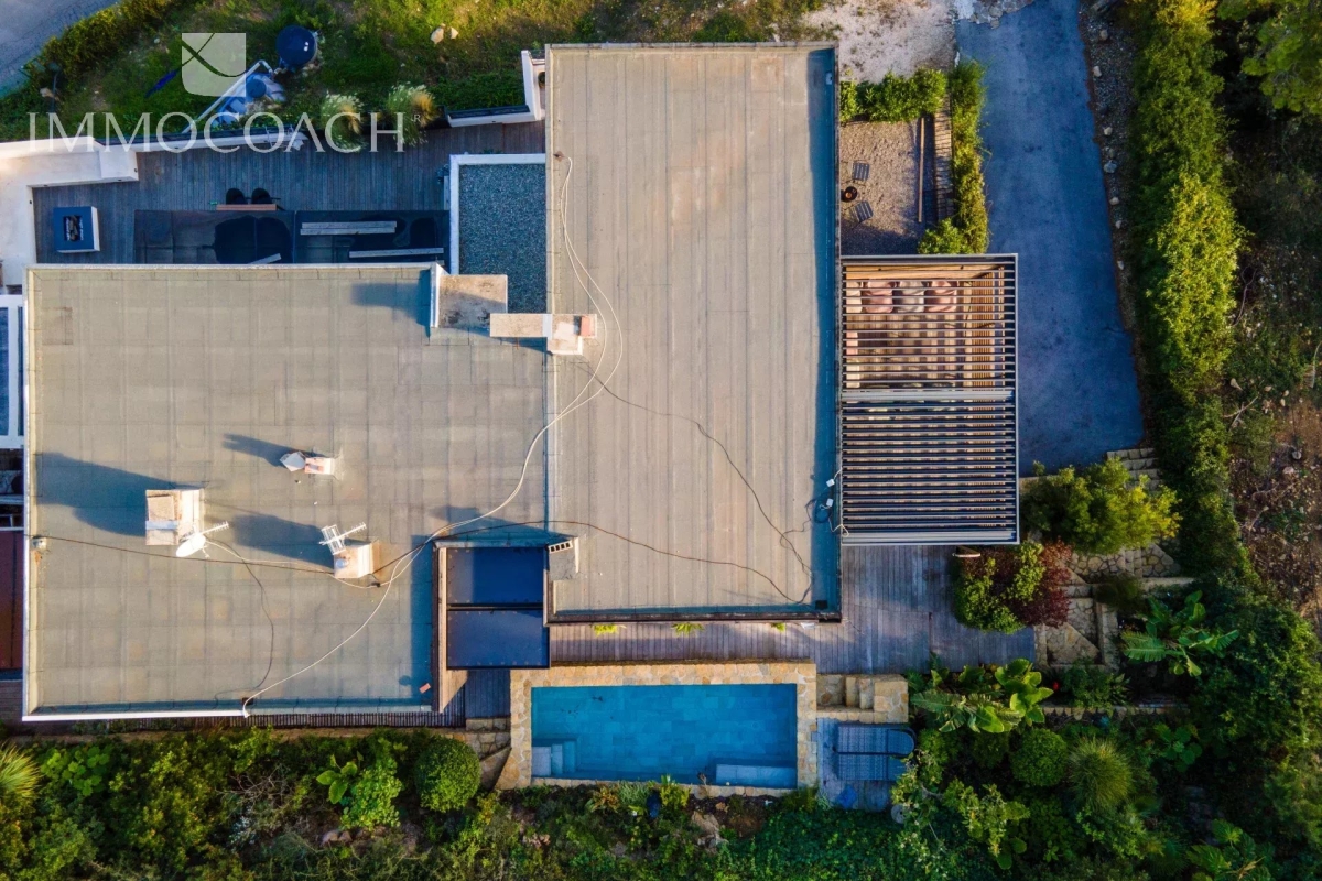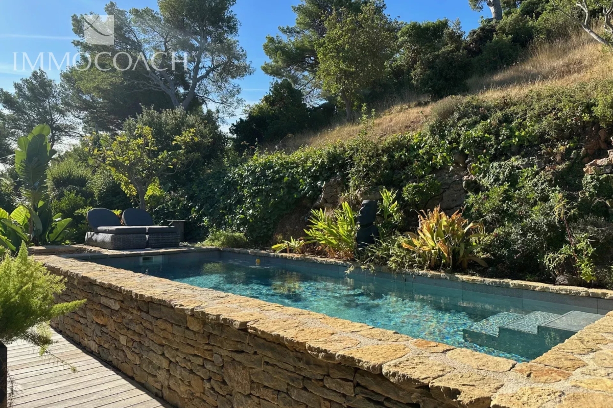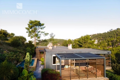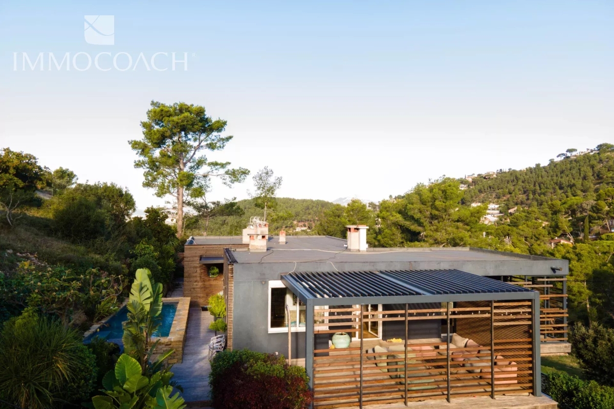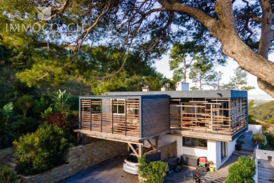 Perchée à flanc de colline, cette villa contemporaine vous offre une vue spectaculaire sur la rade de toulon et les îles d'or. Un havre de paix où la lumière naturelle inonde chaque espace, créant une atmosphère sereine et apaisante. l'intérieur marie avec élégance le design graphique et le confort moderne. Les volumes généreux et les espaces de vie fluides s'ouvrent sur l'extérieur, effaçant la frontière entre dedans et dehors pour une expérience de vie méditerranéenne authentique. La terrasse panoramique devient le cœur de la maison, offrant des espaces détente parfaitement aménagés. La piscine en pierre sèche s'intègre harmonieusement dans le paysage, entourée d'une végétation méditerranéenne préservée. À carqueiranne, vous êtes idéalement situés pour explorer les trésors de la côte d'azur. Découvrez les plages secrètes, partez en excursion vers porquerolles, ou parcourez les domaines viticoles locaux. Le parcours des arts à hyères vous invite à une immersion culturelle unique. Les informations sur les risques auxquels ce bien est exposé sont disponibles sur le site géorisques: www. Georisques. Gouv. Fr carqueiranne- proche hyeres- appartement-villa atypique- vue mer- piscine – renove-contemporain.