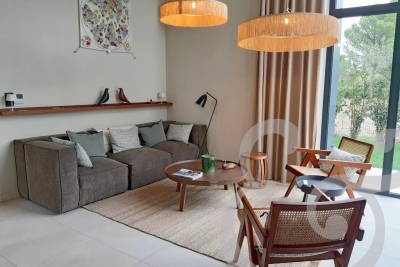 Venez passer un séjour cosy dans cette belle maison fonctionnelle et lumineuse toute proche du centre village d'Eygalières. Au rez-de-chaussée elle comprend un salon avec cheminée et téléviseur ouvrant sur le jardin, une cuisine / salle à manger pour 8 convives ouvrant sur la terrasse couverte, une première chambre avec sa salle de douche. A l'étage se trouvent deux autres chambres avec salles de douches. Toute la maison est climatisée, téléviseur dans chaque chambre, Wifi. Sur la terrasse couverte vous pourrez vous relaxer dans le coin salon d'été, ou prendre les repas préparés à la plancha. Jardinet avec pelouse et joliment fleuri, piscine 7 x 3 m, chaises longues. Capacité 6 personnes. Prix à la semaine selon saison. Honoraires d'agence à la charge du locataire inclus. Réf. L02044