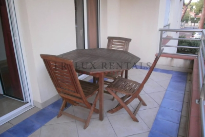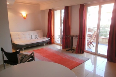 Situé dans une luxueuse résidence avec parc et piscine, grand 2 pièces climatisé avec séjour/cuisine américaine, 1 chambre, salle de bains et wc. Grande terrasse au calme. Contact: +33492939586.
