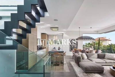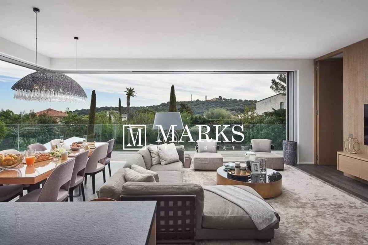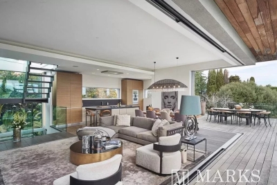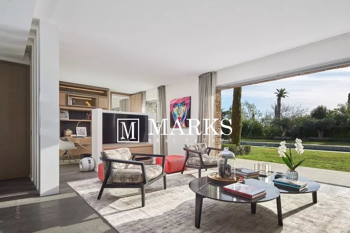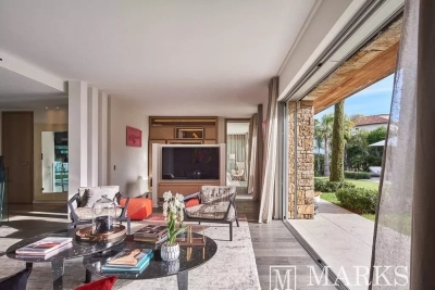 Villa de style contemporain avec immense piscine, vue mer et jardin plat de 1800. Cap d'Antibes, remarquable villa d'architecte contemporaine offrant un panorama exceptionnel sur la mer, les Alpes et le phare du Cap d'Antibes. La villa développe une superficie de 330 m² sur un magnifique jardin paysagé de 1800 m². Elle offre un environnement unique de confort et de luxe conçu par un architecte et décorateur de renom. En approchant de l'entrée principale, vous découvrirez un majestueuse fontaine contemporaine en pierre face à une paroi de verre offrant une luminosité et un décor magique à la villa. Entrée, toilettes invités, salon TV et bureau ouverts sur le magnifique jardin paysagé et la piscine. Chambre principale spacieuse donnant sur la piscine et le jardin. Salle de bain en marbre, baignoire, douche multi jets, double vasque et WC. Grand dressing aménagé de 9 m². Chambre d'hôtes donnant sur la piscine et le jardin. Salle de douche avec WC et lavabo. Dressing. A l'étage: un panorama splendide grâce à une vue sur le phare et sa verdure préservée et de beaux aperçus sur la mer et les Alpes. Une superbe pièce avec une hauteur sous plafond de 3 m et une immense baie vitrée minimaliste pouvant s'ouvrir entièrement en cloison en brique et se prolongeant sur une terrasse en bois de 70 m². Salon, salle à manger (table pour 8 à 10 personnes), cuisine américaine entièrement équipée (Gaggenau). Terrasse avec table ronde pour 10-12 personnes avec vue le phare, la mer et les Alpes. Deuxième chambre principale spacieuse avec 3 mètres de hauteur sous plafond, grand dressing, toilettes. Salle de douche en marbre avec double vasque et douche multi jets. Chambre enfant avec dressing, salle d'eau en marbre, lavabo et toilettes. Accès à la terrasse sur le toit par un bel escalier conçu en verre, fer forgé et bois. Exceptionnel panorama depuis la terrasse sur le toit. Belle vue mer et la côte italienne, surplombant les Alpes, Nice, le Cap Ferrat et une vue splendide sur le phare du Cap d'Antibes. Toit terrasse d'une surface de 100 m² entièrement meublé avec des meubles design. Immense canapé d'angle, un deuxième salon avec fauteuils et tables basses. 2 transats et 2 parasols. Grand bar en pierre et bois avec réfrigérateur et évier. Niveau - 1: Espace piano, caves à vin. Chambre 5 spacieuse avec puits de lumière et hauts plafonds. Dressing, toilettes séparées, salle de bain avec vasque et baignoires de thalassothérapie. Beau sauna design tout en verre pour 4 personnes. Douche en pierre et 2 lits pour se détendre. Buanderie avec lave-linge, sèche-linge et évier. Cuisine personnelle entièrement équipée. Villa connectée a la domotique (alarme, vidéosurveillance, conception d'éclairage par scénario) Son haut de gamme en multi pièce, dans les 2 salons en home cinéma, sauna, chambre parentale du jardin, terrasse sur le toit, terrasse, jardin. Internet wifi. Parking pour 4 voitures. En savoir plus sur ce texte source Vous devez indiquer le texte source pour obtenir des informations supplémentaires Envoyer des commentaires Panneaux latéraux Contact: +33612116233.