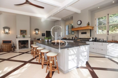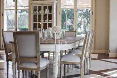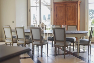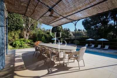 Superbe propriété d'environ 600 m2 pouvant accueillir 12 personnes. La villa est composée de 6 chambres avec salles de bain ou douche y-compris WC en suite, 2 WC séparés, un grand salon, un séjour, une grande cuisine dinatoire de 80 m2. Un espace détente composé d'un hammam, d'un sauna, d'un cinéma et d'une salle de sport. Le bien est entièrement sécurisé. A l'extérieur se trouvent : une piscine pouvant être chauffée, un abri pour 4 voitures, un terrain de tennis, un terrain de pétanque, plusieurs terrasses, 1 villa de gardien avec 2 lits simples, une kitchenette et une salle-de-bain. Contact: +33647030154.