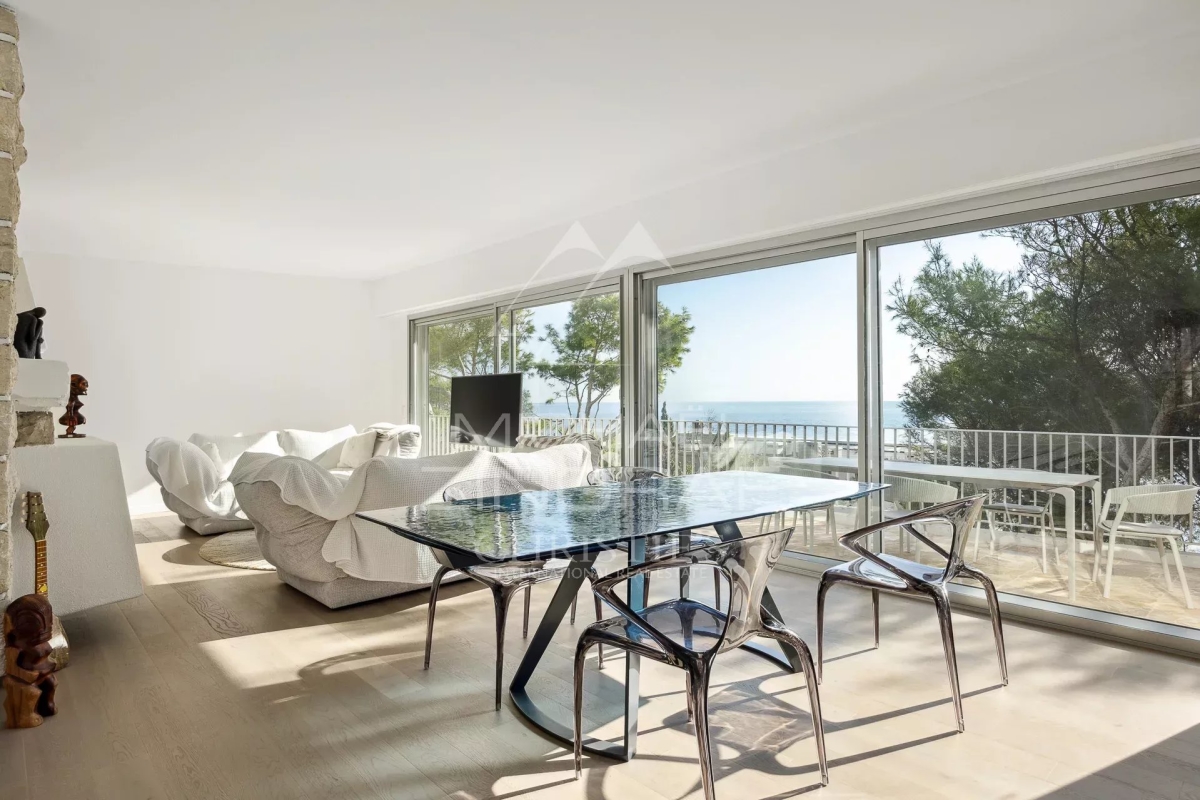 Idéalement située, villa à pied des plages de 170 m² environ, comprenant au rez-de-chaussée : deux studios. A l'étage, une cuisine équipée, un séjour, deux chambres en suite avec salle de douche. Garage. Piscine. Terrain de 1600m². Vue mer. N° de déclaration: 06004237000CM