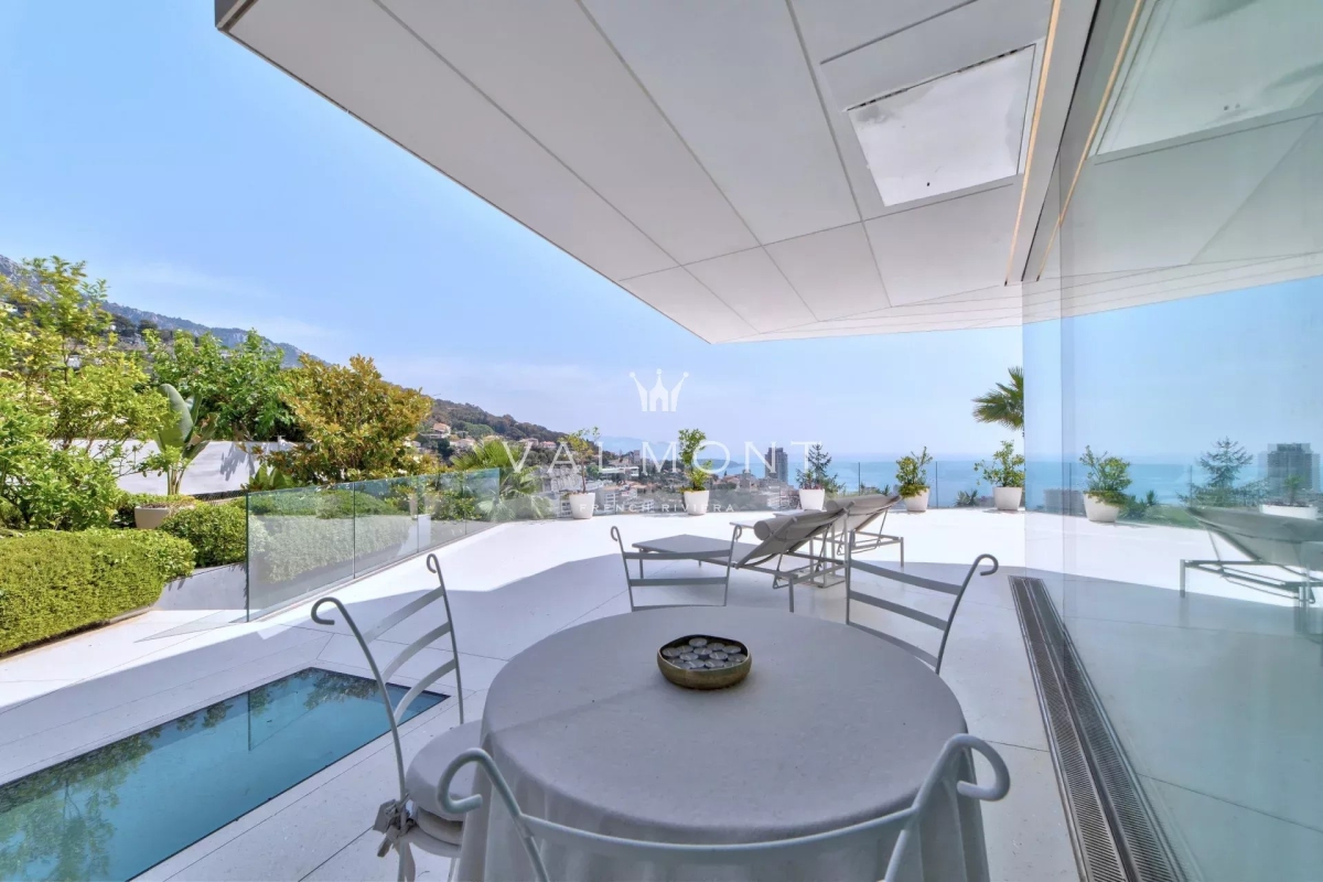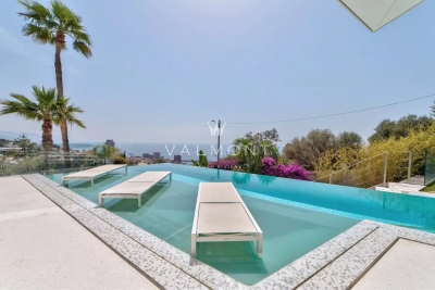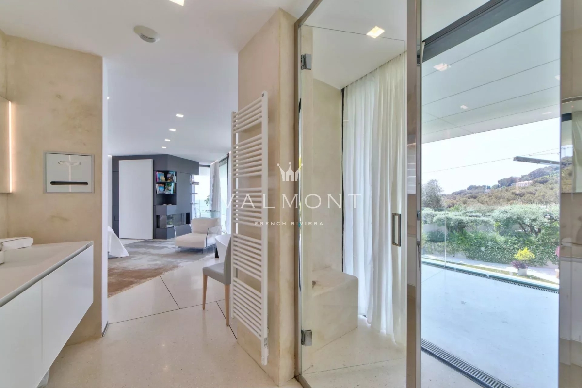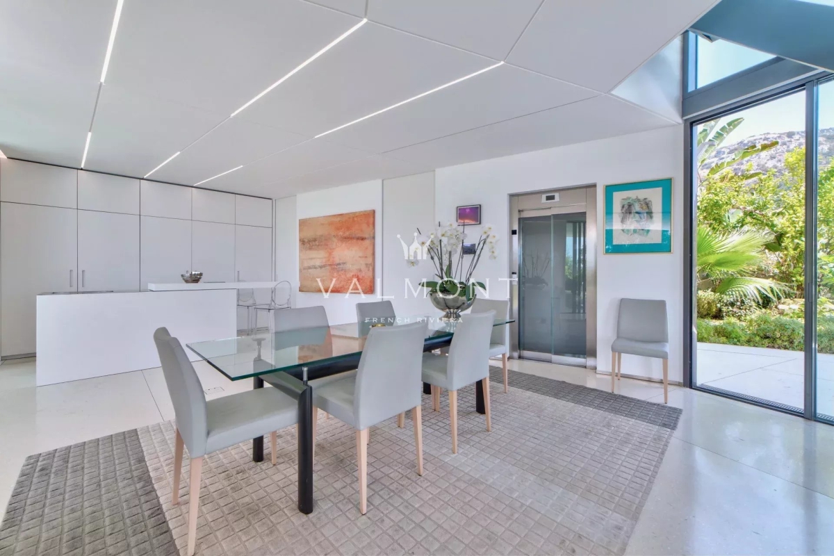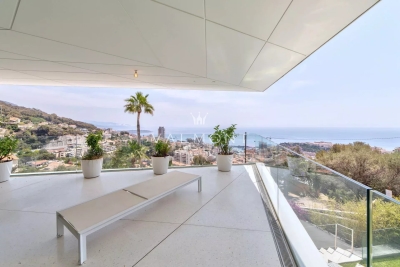 BEAUSOLEIL: Située à quelques pas de Monaco, cette superbe villa contemporaine bénéficie d'une vue magnifique sur la mer et la principauté. De style minimaliste, la villa profite d'environ 460 m² de surface habitable divisée en trois niveaux accessible avec ascenseur. La propriété dispose de deux chambres en suite à l'étage dont une spacieuse chambre de Maître donnant sur une grande terrasse avec une vue imprenable sur la mer. Au rez de jardin: grand séjour, salon, cuisine ouverte, coin repas. Au rez-de-chaussée: deux appartements privés avec leur chambre, salle de bains, réception, dressing et chambre de bonne. La villa possède également d'une salle de yoga, salle de cinéma intérieure / extérieure et une cave à vin. Cette luxueuse villa propose des prestations haut de gamme : intérieur Antonio Lupi, finition en Tadelakt, «James Bond» bar «rétractable»… Arboré de plusieurs plantes exotiques, le jardin de la propriété dispose d'une grande piscine de 18m ainsi que de plusieurs espaces de relaxation répartis sur les vastes terrasses de la villa. Un parc aménagé situé à coté de la villa offre sur un hectare un sentier botanique et un parcours sportif.
