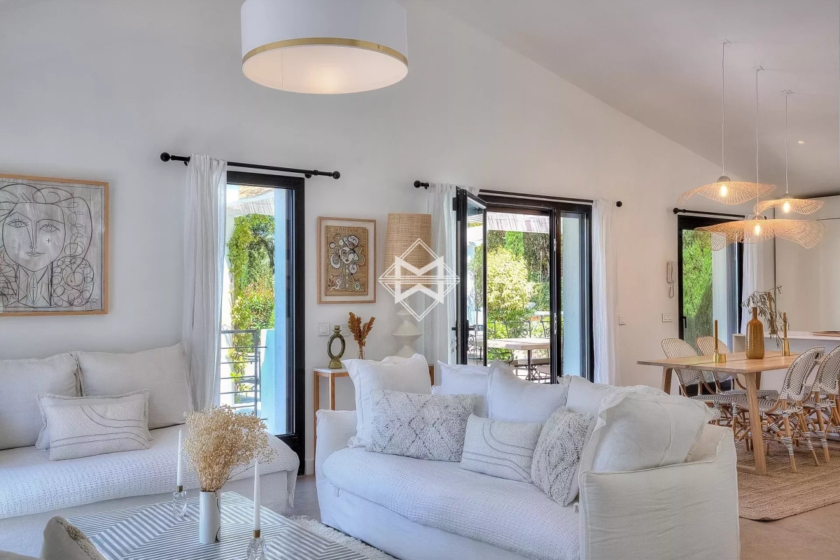 Cette charmante demeure d'environ 125 m², se trouve sur un vaste terrain de 2 350 m² orienté sud-ouest. Elle bénéficie d'un jardin paysagé et d'une piscine, offrant un espace extérieur agréable. Idéalement située à seulement 10 minutes du centre-ville de Cannes et de ses plages, cette propriété offre un cadre de vie tranquille tout en restant proche des attractions principales. La propriété se compose comme suit : AU REZ DE CHAUSSEE : - un séjour / salle à manger, - une cuisine ouverte équipée, - Chambre 1 : suite de Maître avec salle de douche, - Chambre 2 : suite d'invités avec salle de douche, AU REZ DE JARDIN : - Chambre 3 : suite d'invités avec salle de douche, - une buanderie accessible par l'extérieur, Cette demeure est idéale pour les famille mais également pour les réceptions grâce à la taille de son terrain, des extérieurs et la piscine. Estelle FACCHINETTI - Agent commercial - EI - RSAC 87862822