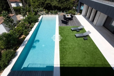 Villa contemporaine située au cœur du secteur le plus recherché de Cannes offrant de très beaux volumes et espaces de réception. De l'étage elle bénéficie également d'une belle vue mer sur la baie de Cannes, des Iles de Lérins jusqu'au Massif de l'Esterel. Cette villa d'environ 500 m² comprend : - Un hall d'entrée - Des toilettes invités - Une belle réception composée d'un séjour - Une salle à manger - Une cuisine entièrement équipée - 6 chambres en suite - Un studio indépendant - Un deuxième salon à l'étage - Un toit terrasse - Une buanderie au sous-sol et un garage pour plus de 10 véhicules Numéro de déclaration : 06029024685MX Estelle FACCHINETTI - Agent commercial - EI - RSAC 87862822