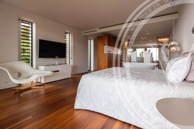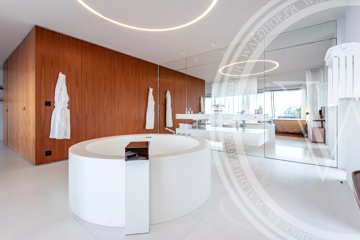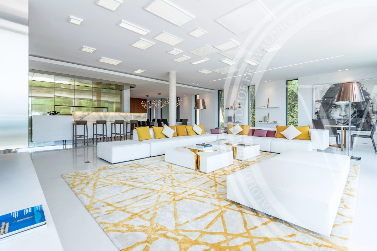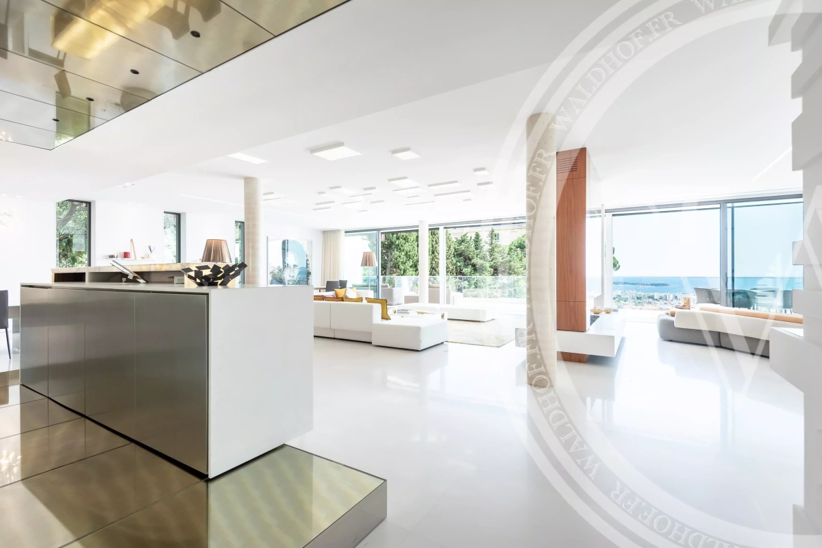 Dans le quartier ultra-résidentiel de la Californie à Cannes, cette propriété contemporaine d'environ 850 m² habitables offre un panorama exceptionnel sur la baie, la ville et l'Estérel. Située à 45 minutes de Monaco en voiture, elle réunit tous les attributs du luxe méditerranéen. Implantée sur un terrain paysager de 3 820 m², la villa s'articule autour de vastes volumes baignés de lumière : double salon avec bar, salle à manger, cuisine séparée, et une suite principale majestueuse avec salle de bain privative. Cinq suites supplémentaires, une salle TV, un appartement indépendant de deux pièces et un ascenseur desservant tous les étages complètent le confort résidentiel. L'espace bien-être est remarquable : salle de sport, spa avec hammam, salle de massage, le tout intégré dans un pool house de 100 m². À l'extérieur, une piscine miroir de 17 mètres, un terrain de tennis, un terrain de pétanque, une cuisine d'été et plusieurs terrasses aménagées prolongent l'élégance du lieu. Garage pour trois véhicules et stationnements extérieurs disponibles. Une propriété rare, pensée pour une clientèle exigeante recherchant volume, vue, et prestations irréprochables à quelques minutes de la Croisette. Contact: +33493170374.