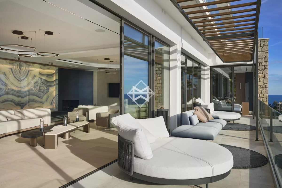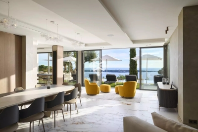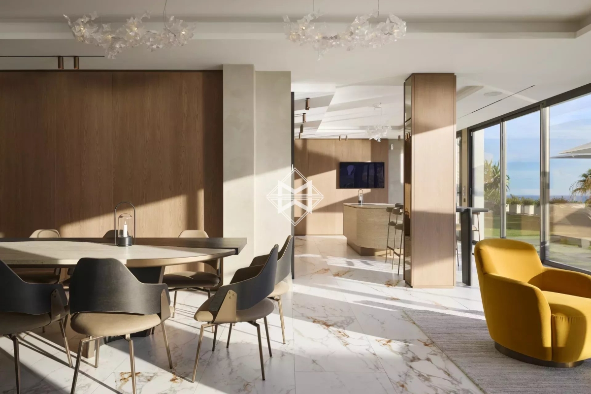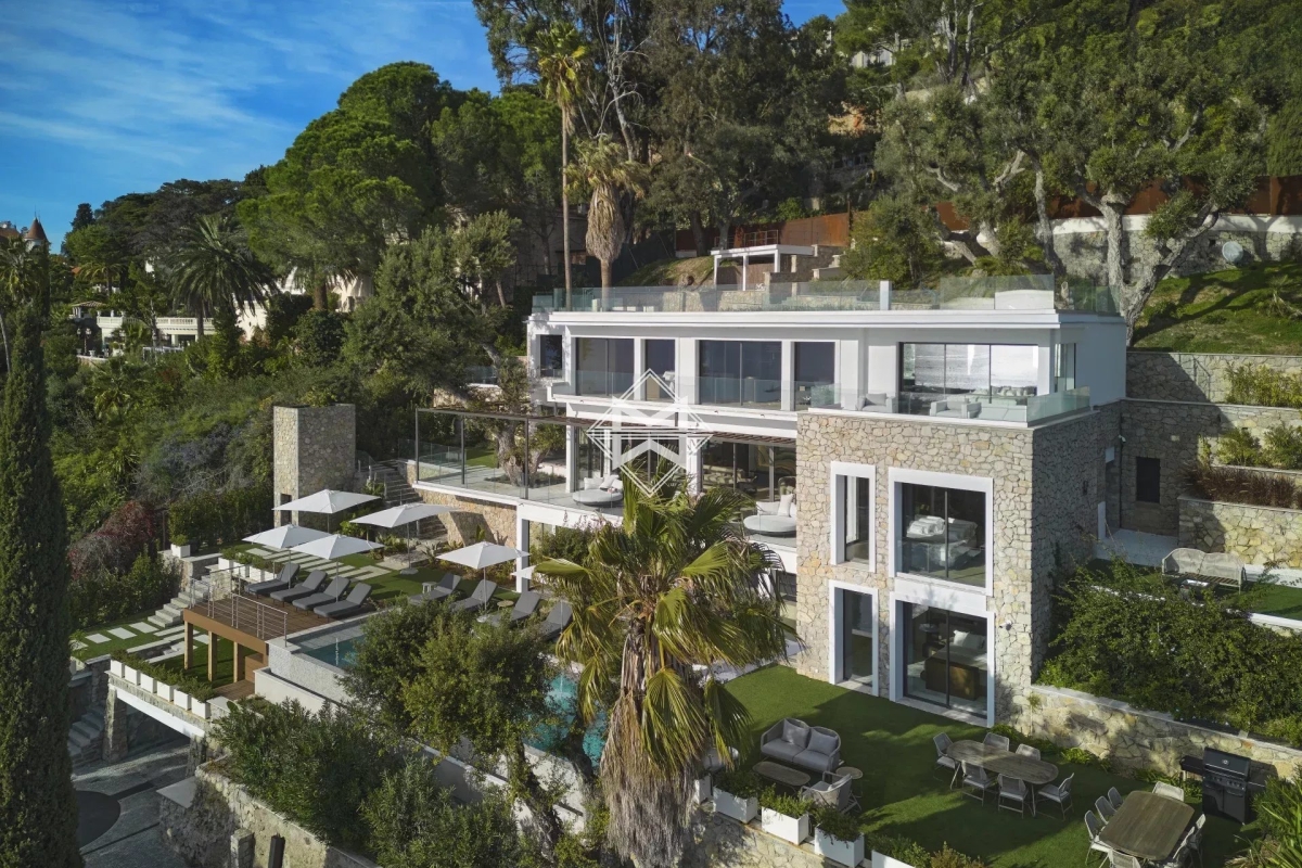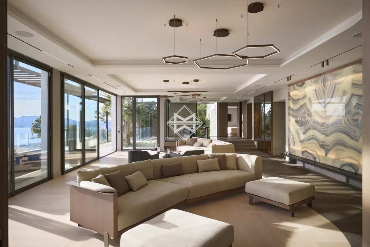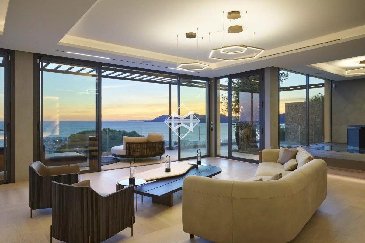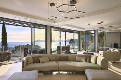 Située dans un petit Domaine entièrement fermé et sécurisé, cette villa d'exception de près de 600m2 jouit d'un Rooftop panoramique de 230m2. Elle se compose de 6 suites dont 3 masters, une de 60m2 et une de 85m2, toutes deux bénéficient d'une terrasse privative. A l'extérieur, une piscine à débordement sur les îles de Lérins jusqu'au Suquet et Theoule. Elle dispose également de deux accès vers Cannes Croisette et direction Mougins ainsi que huit places de Parking. Estelle FACCHINETTI - Agent commercial - EI - RSAC 87862822