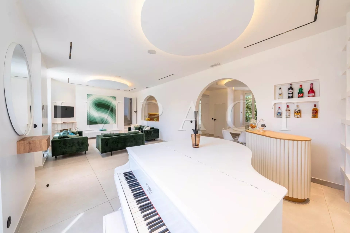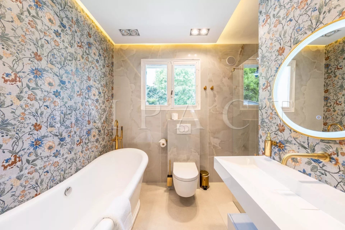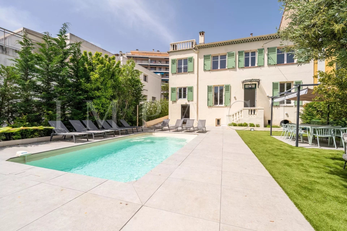 Location saisonnière & longue durée - Cannes proche centre-ville à pied - Villa rénovée Idéalement située à 15 minutes à pied de la Rue d'Antibes, sur une parcelle de 500 m², belle villa entièrement rénovée de 4 chambres, 4 salles de bains et 1 studio indépendant. Description Séjour avec 3 canapés, coin télévision, piano, salle à manger équipée pour 10 personnes. Grande cuisine ouverte entièrement équipée avec îlot central. 5 chambres, 5 salles de bains/douches. Piscine chauffée 7m x 3.5m. Sauna - Hammam - Salle de Gym. Combles aménagés et climatisés avec babyfoot et grand écran TV, s'ouvrant sur un rooftop aménagé, vue ville. Plusieurs terrasses dont un rooftop, une pergola ombragée et un barbecue complètent le confort de cette villa. Autres prestations : Wi-fi, climatisation, 2 places de stationnement à l'intérieur. Equipée pour 10 personnes. Conditions de location : Bail Meublé à l'année (12 mois) A louer à partir de maintenant. - Loyer : 10 500 € net / mois + charges locatives + honoraires d'agence; - Charges locatives : EDF - Eau - Internet - Taxe d'habitation - Assurances en supplément Entretien extérieur jardin + piscine inclus. - Honoraires d'agence : 1 mois de loyer + TVA à la charge du locataire. 1 mois de loyer + TVA à la charge du propriétaire. Contact: +33628933780.