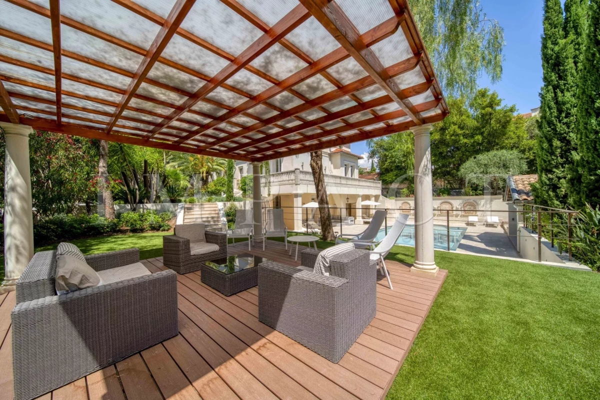 Maison principale : Hall d'entrée avec doubles toilettes invités et vestiaire. Triple salon avec télévision a` écran plasma et accès a` la terrasse. Salle a` manger donnant sur la terrasse et le jardin. Cuisine entièrement équipée avec 5 feux au gaz, four électrique, frigo-congélateur, lave-vaisselle, four micro-ondes, toaster, machine Nespresso, robot multifonction, mousse-lait, Premier étage : Chambre N°1 : lit double (140 cm) avec télévision et coffre. Salle de bains avec douche, toilette et lavabo. Chambre N°2 : (Chambre maitre) lit double (180cm) avec télévision et coffre. Salle de bain avec baignoire, douche, toilettes et lavabos doubles vasques. Chambre N°3 : lits simple (2 x 90cm) avec télévision et coffre. Salle d'eau avec douche, toilette et lavabo. Chambre N°4 : lit simple (2x 90cm) avec télévision et coffre. Salle d'eau avec douche, toilette et lavabo. Chambre N°5 : (Master Guest) lit double (1 x 180cm) avec télévision et coffre. Dressing. Salle de bain avec douche, lavabos doubles vasques et toilettes. Deuxième étage : Chambre N°6 : lit double (180cm) et lit (1x 140cm) avec poutres au plafond, télévision et coffre. Salle de bain avec douche, baignoire, lavabos doubles vasques et toilettes. Chambre N°7 : lit double (160cm) avec télévision et coffre. Salle de bain avec douche, lavabo et toilettes. Rez-de-Jardin : Toilettes invités. Sauna, salle de sport avec équipement techno gym Home cinéma et salle de billard. Maison Annexe : Salon télévision, salle à manger, cuisine équipée (plaque à induction, four, frigo-congélateur, lave-vaisselle), toilettes invités. Premier étage : Chambre N°1 : lit double (140cm), dressing Chambre N°2 : lits simples (2 x 90cm), dressing Salle de bain, baignoire avec douche, lavabo, toilettes Extérieur : Terrasse couverte avec table extérieure pour 15 personnes. Doubles toilettes invites et douche. Piscine chauffée 15m x 6m Cuisine d'été avec four, four à pizzas, micro-onde, machine a` glaçons, double réfrigérateur, plaque de cuisson, lave-vaisselle, barbecue a` gaz, fritteuse électrique. Terrasse couverte avec salon d'été. Grand espace de réception avec terrain plat et pergola avec salon d'été. Autres prestations : - Aire de stationnement pour 6 voitures. - Alarme reliée au centre de sécurité´, - Internet fibre très haut-débit intérieur, extérieur - Air-conditionné dans toute la villa. - Portail automatique avec vidéophone Équipée pour : 19 personnes. Contact: +33778826164.