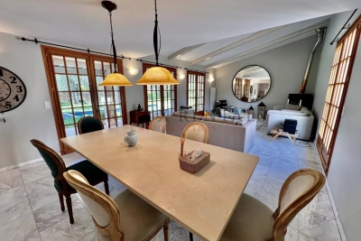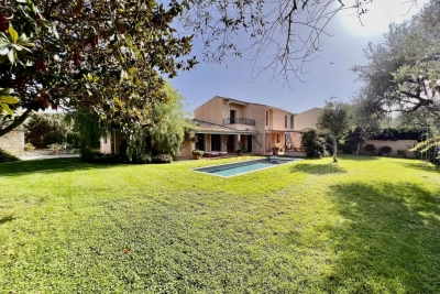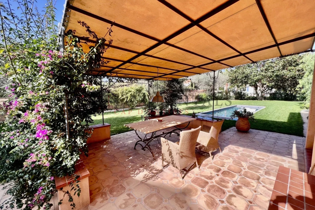 Charmante villa d'environ 210 m² avec jardin et piscine chauffée Cette agréable villa développe une surface d'environ 210 m² et propose un vaste séjour avec salle à manger, une cuisine entièrement équipée, trois chambres, deux salles de douche, une salle de bains ainsi qu'une buanderie. Les chambres bénéficient de la climatisation pour un confort optimal. Une chambre annexe avec point d'eau vient compléter l'ensemble. À l'extérieur, un grand jardin d'environ 1 500 m² accueille une piscine chauffée et un abri voiture, offrant un cadre de vie idéal alliant confort et sérénité. Contact: +33492939586.