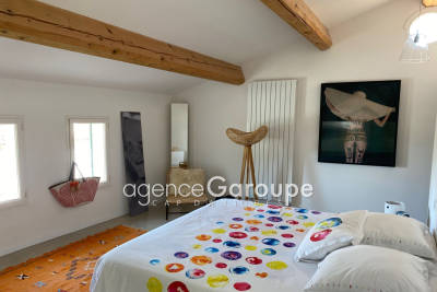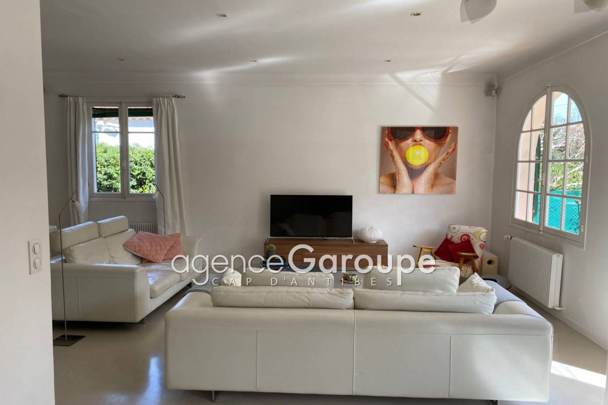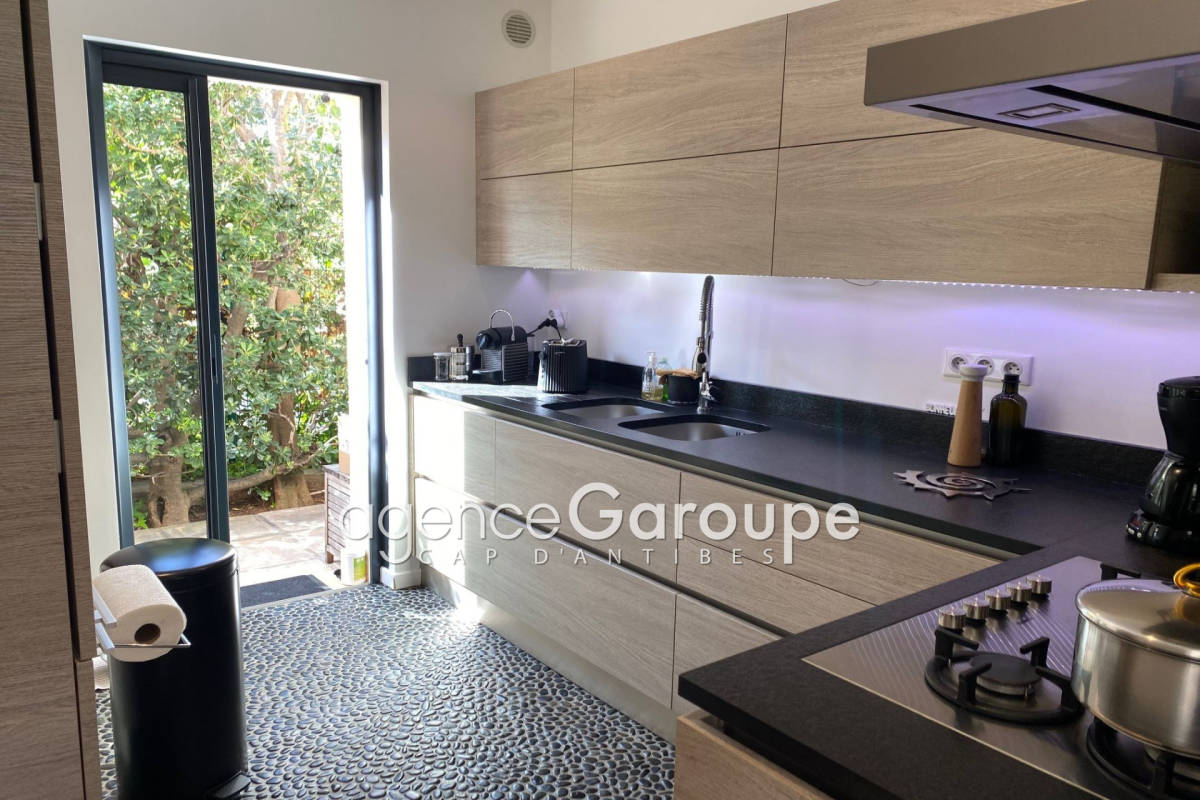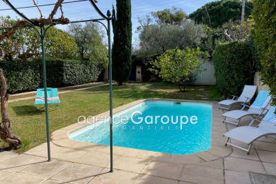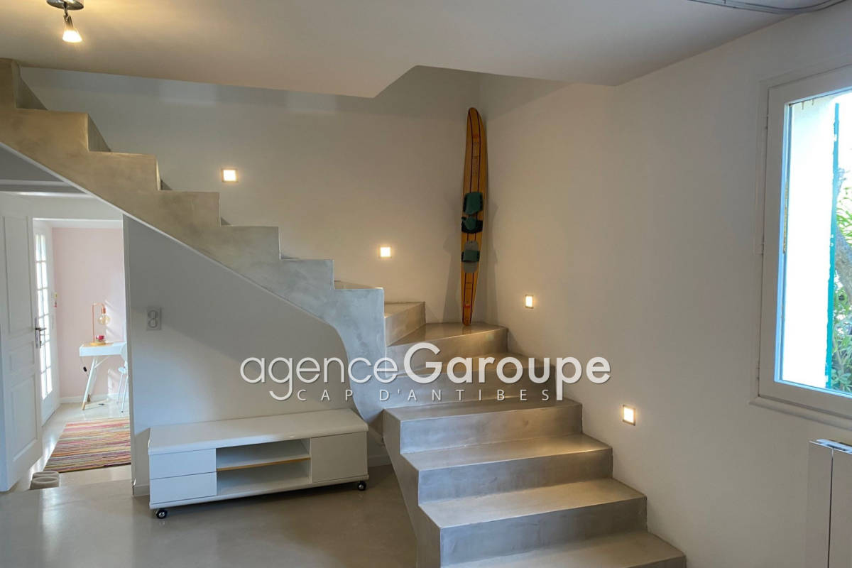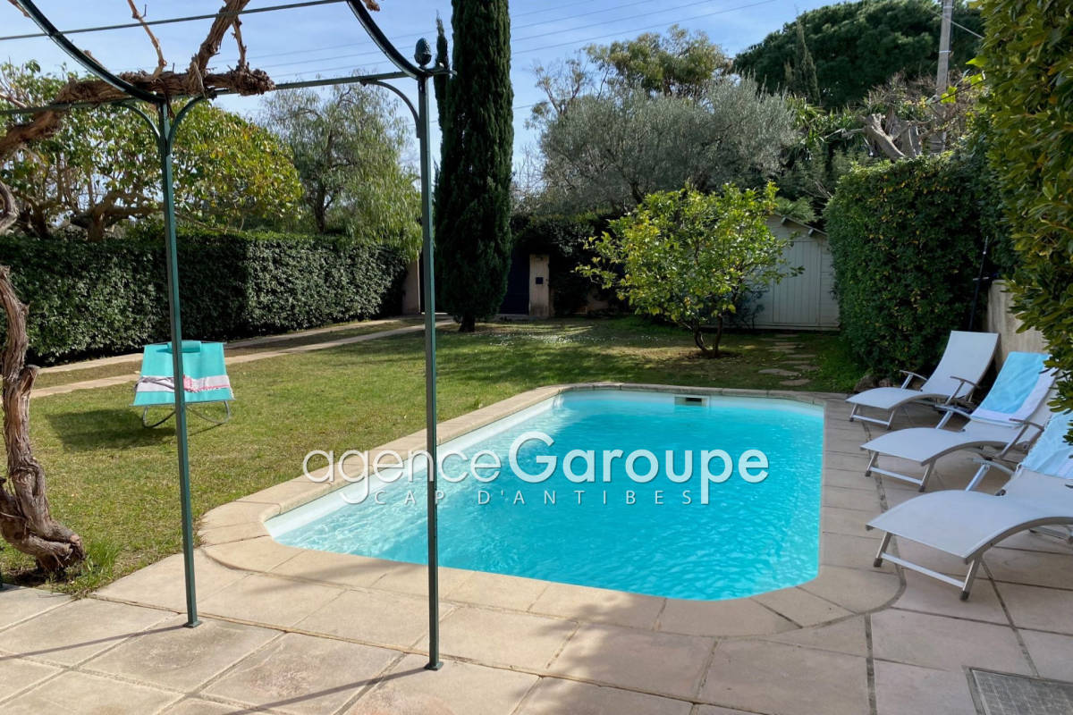 Niché à 100m de la plage de la Garoupe joli petit cottage de 130m2 composé d'un salon-salle à manger, d'une cuisine contemporaine, deux chambres, une sdbs et un bureau avec canapé lit, à l'étage une chambre master avec dressing et sdds. Jardin de 700m2 avec piscine, villa uniquement disponible en juillet et aout. Contact: +33(0)493674727.