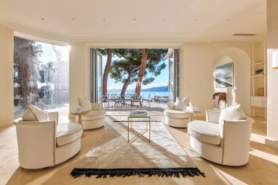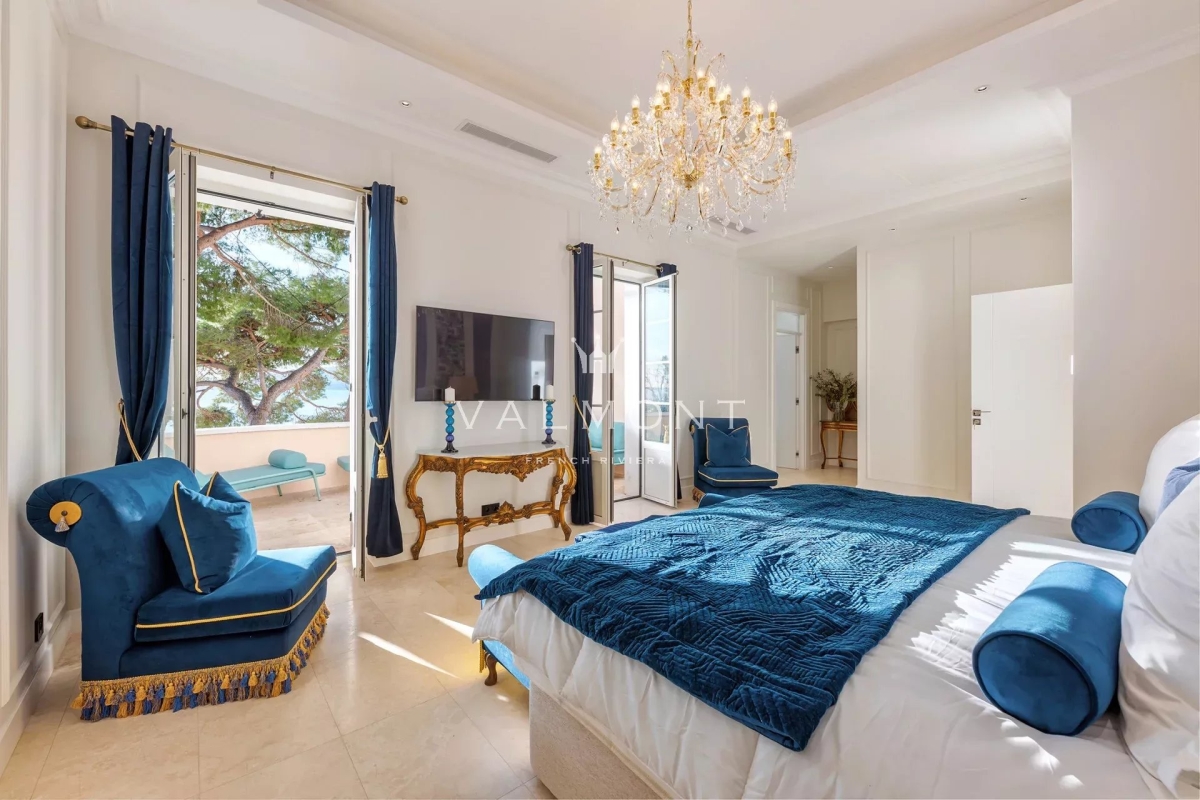 EXCLUSIVITÉ - ANTIBES : Idéalement située en bord de mer, au cœur d'Antibes, cette villa entièrement rénovée offre un accès direct à la Méditerranée, garantissant une expérience incomparable sur la Côte d'Azur. Dès l'entrée, une vue panoramique à couper le souffle se dévoile, sublimée par un séjour baigné de lumière et une élégante salle à manger s'ouvrant sur une vaste terrasse face à la mer. Avec six chambres en suite et un pavillon indépendant pour le personnel comprenant quatre chambres et un studio, cette propriété allie harmonieusement raffinement et confort. Au coucher du soleil, l'horizon se métamorphose en un tableau fascinant de couleurs, rendant chaque soirée inoubliable. Un coin de Méditerranée rien qu'à vous, à quelques pas de l'un des hôtels les plus emblématiques de la Riviera et de son restaurant gastronomique renommé.