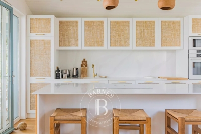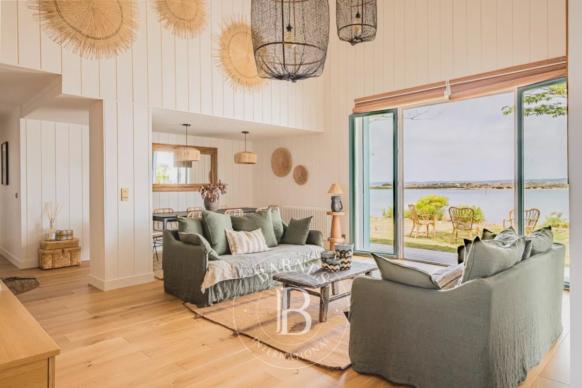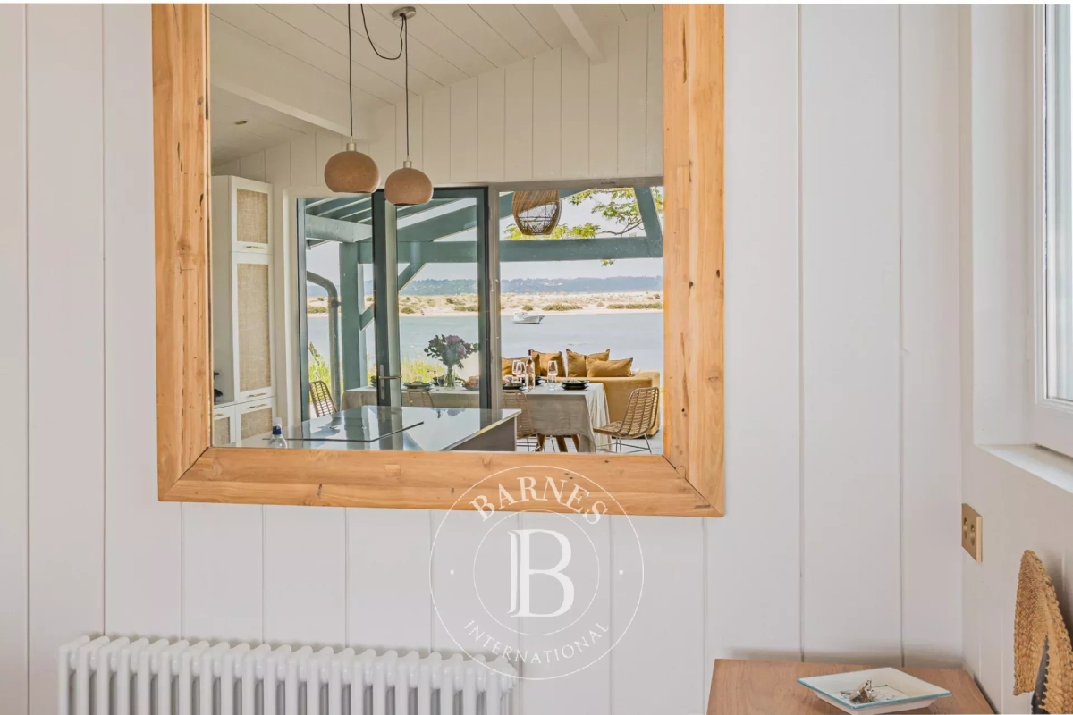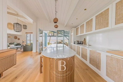 L'agence BARNES Cap Ferret vous présente cette villa d'exception située en première ligne, dans le quartier recherché du Mimbeau, au Cap Ferret. Une adresse rare, face à la Dune du Pilat, avec un accès direct à l'eau depuis le jardin, à proximité immédiate des commerces, des cabanes ostréicoles du Village des Pêcheurs et du centre du Cap Ferret. D'une surface généreuse, la pièce de vie lumineuse s'ouvre sur une terrasse en bois avec vue dégagée. La cuisine, ouverte et parfaitement équipée, dispose d'un cellier attenant. Plusieurs espaces extérieurs sont aménagés pour profiter de chaque moment de la journée : un solarium, un coin repas ombragée et un espace détente presque les pieds dans l'eau, pour prendre l'apéritif. La villa principale comprend quatre suites, toutes avec rangements et salle d'eau privative. À l'étage, l'une d'elles bénéficie d'un balcon avec vue panoramique sur la Conche du Mimbeau. Une dépendance accueille une chambre supplémentaire avec sa salle de bains. Une villa idéale pour des vacances en famille ou entre amis, dans l'un des emplacements les plus prisés du Cap Ferret. Notre service conciergerie peut vous accompagner pour organiser un séjour sur mesure selon vos envies. Contact: +33789062188.
