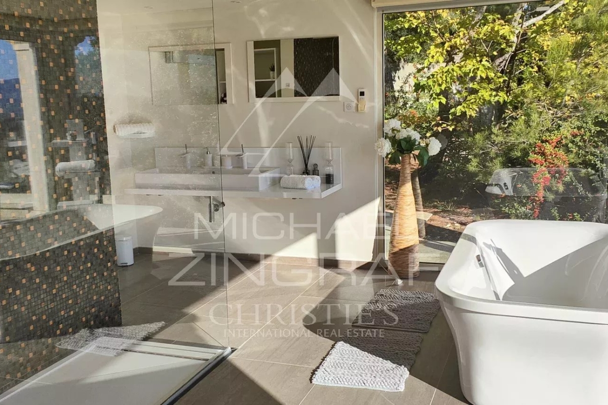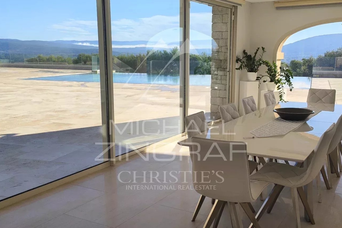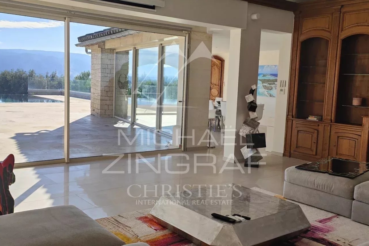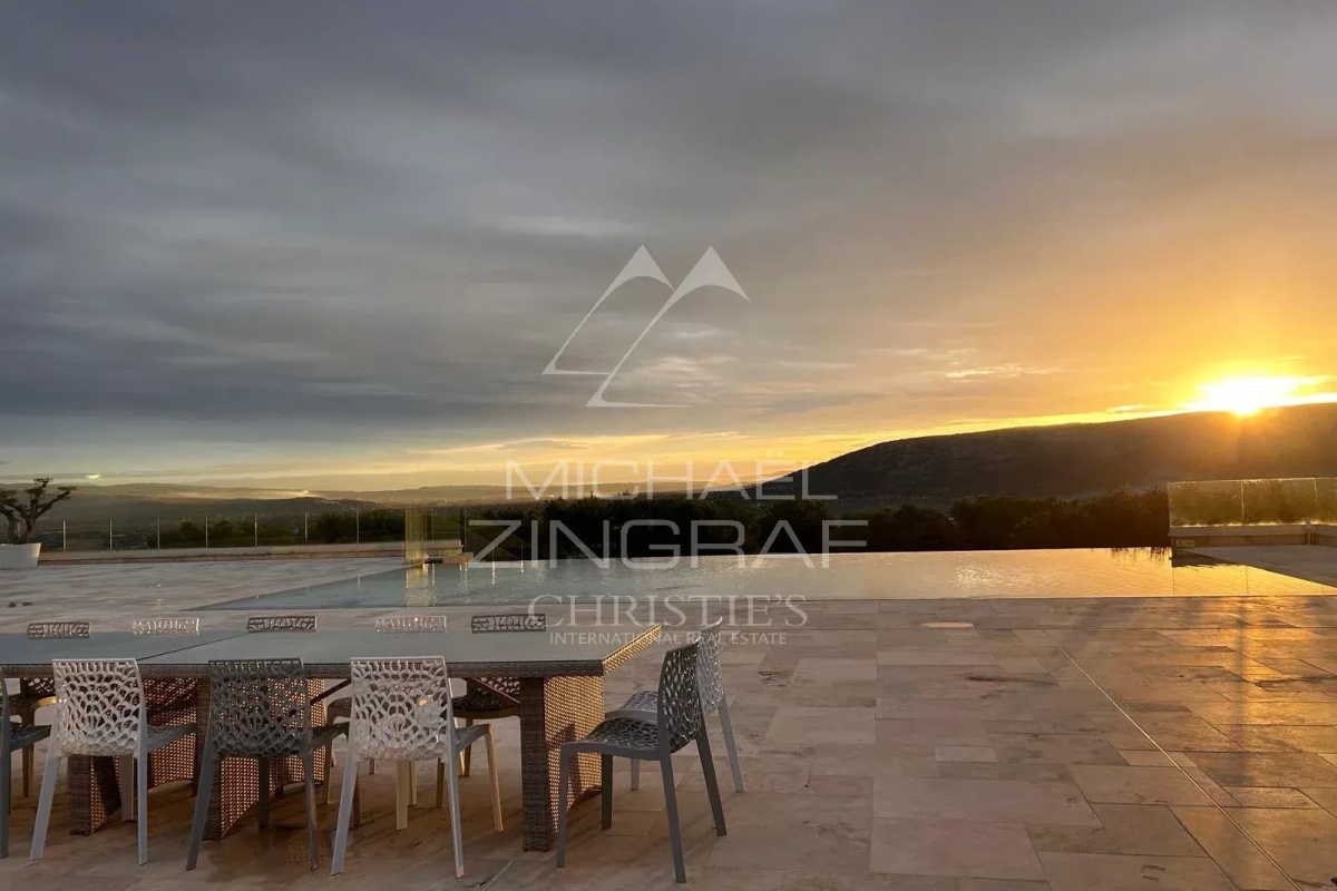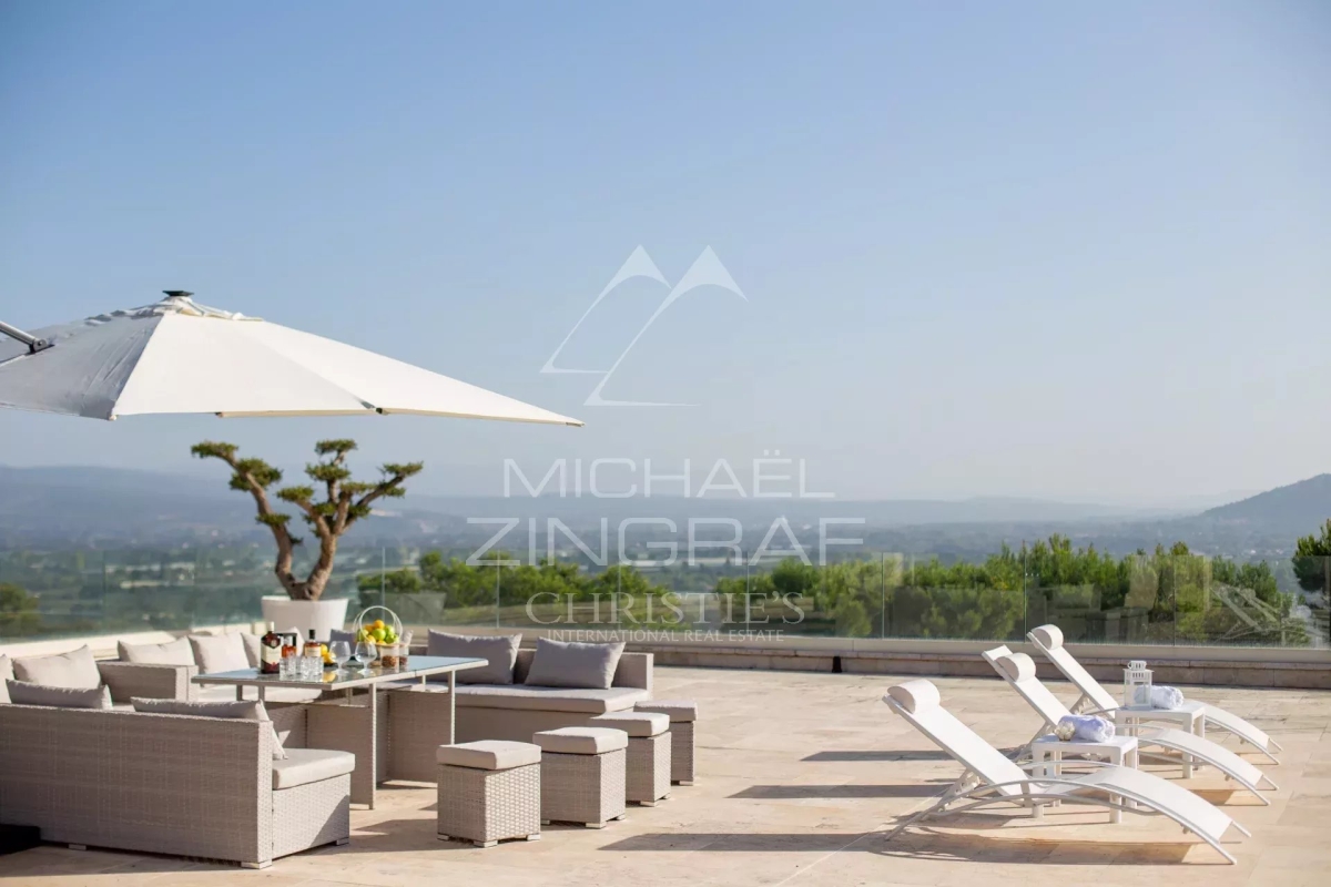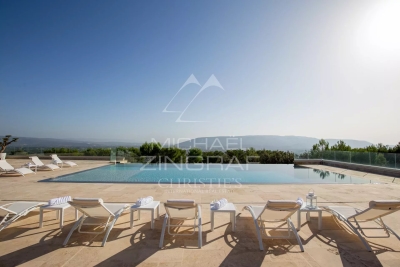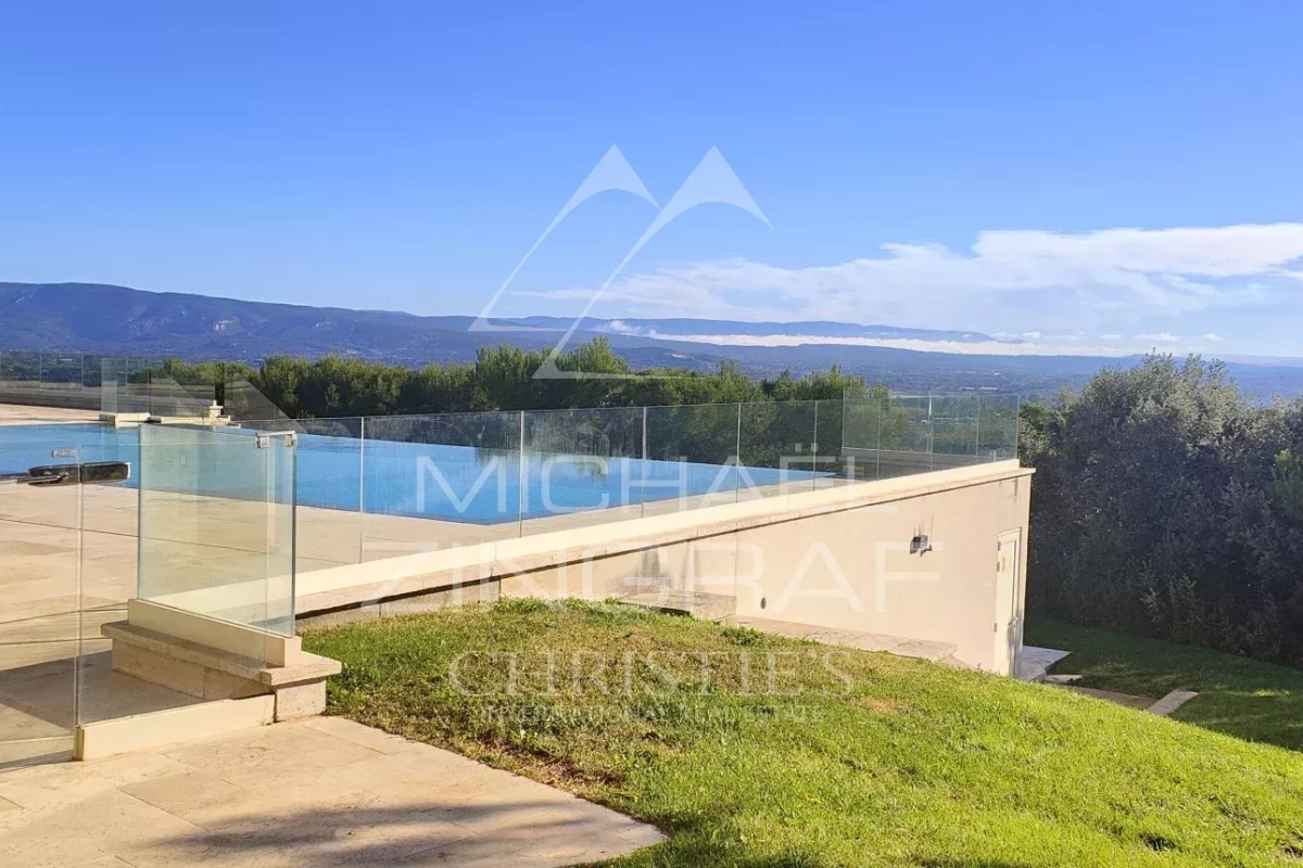 Perchée sur une colline dans un quartier résidentiel standing, cette magnifique propriété en pierre de taille profite d'une vue à couper le souffle sur le Luberon, le Mont Ventoux et les Alpilles et réunit tout les atouts pour vous faire passer un séjour inoubliable. A l'extérieur, une terrasse de plus de 400m2 avec immense piscine miroir à débordement, un jacuzzi, un terrain de pétanque. A l'intérieur, des pièces de vie et 5 chambres spacieuses et lumineuses, dont 3 en suite. Le tout climatisé et avec un accès direct à l'extérieur et à la vue imprenable sur les environs. Une salle de sport de plus de 100m2 avec hammam.