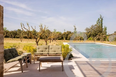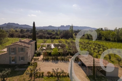 Niché au cœur des Alpilles et à quelques minutes du charmant village d'Eygalières, le Domaine est une ravissante propriété dotée d'un verger d'oliviers et d'amandiers de plus de 6 hectares. Ce Mas entièrement rénové en 2023 vous ouvre ses portes pour une expérience inoubliable. Alliant élégance contemporaine et authenticité, il offre un cadre raffiné et tout le confort moderne pour accueillir jusqu'à 8 personnes (adultes et enfants). Dès l'entrée, vous serez séduits par l'atmosphère conviviale du vaste espace de vie, sublimé par un sol rafraîchissant en été et chauffant en hiver. Profitez d'un coin salon cosy avec cheminée et rétroprojecteur pour des soirées cinéma en famille ou entre amis. La cuisine entièrement équipée, avec son piano professionnel et son îlot central, invite à des moments de partage autour de bons petits plats. Côté nuit, le Mas dispose de quatre chambres décorées avec soin, chacune avec sa propre salle de bain pour un confort absolu. La chambre du rez-de-chaussée s'ouvre sur une terrasse privative, offrant un accès direct à la nature environnante. Laissez-vous envoûter par le jardin paysagé, conçu par un spécialiste des essences provençales. Véritable havre de paix, il s'intègre harmonieusement au verger et évolue au fil des saisons. L'espace extérieur a été pensé pour des instants de convivialité et de plaisir : un salon de jardin élégant, une grande table pour des repas en plein air, un barbecue/plancha pour des grillades, ainsi qu'un système d'enceintes connectées pour prolonger la magie jusqu'au bout de la nuit. Profitez d'une pause détente au bord de la piscine de 18 x 6 mètres, chauffée d'avril à octobre. Juste à côté, le terrain de pétanque vous invite à des parties animées à l'ombre des oliviers. Marine, de la conciergerie Charme Edition et l'agence Valancogne Partners, vous accueillera avec le sourire et sera à votre écoute tout au long de votre séjour. Originaire de la région, elle vous dévoilera ses meilleures adresses et vous ouvrira les portes des trésors provençaux. En partenariat avec des artisans locaux, Marine peut organiser pour vous des prestations exclusives : cours de tennis ou de sport, massages et soins bien-être, location de vélos pour explorer la région, livraison de petits-déjeuners et courses à domicile, et bien plus encore ! Séjourner dans ce Mas, c'est s'offrir une parenthèse enchantée au cœur d'un cadre idyllique, entre luxe discret, douceur de vivre et découvertes authentiques. Réservez dès maintenant et laissez-vous séduire par l'art de vivre provençal. Prix à la semaine selon saison. Honoraires d'agence à la charge du locataire inclus. 2h de ménage en milieu de semaine inclus. Réf. L02069