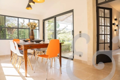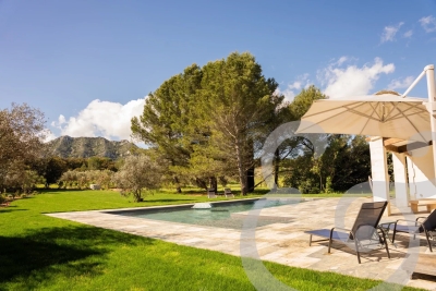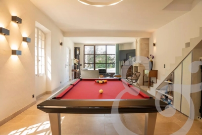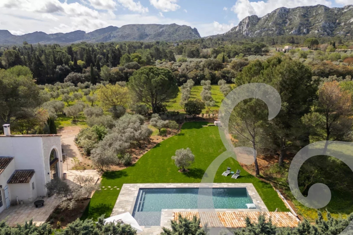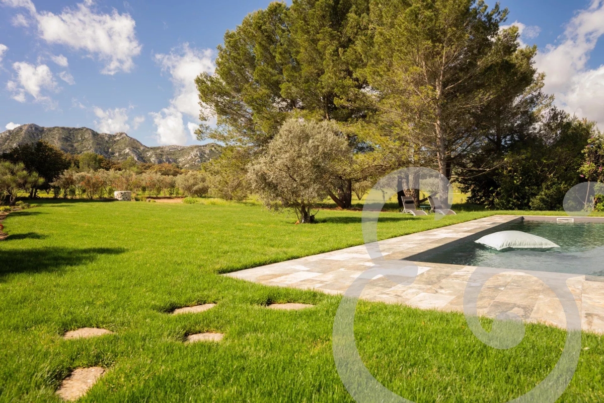 Idéalement situé à seulement 10 minutes à pied du centre du charmant village d'Eygalières, ce mas vous offre l'opportunité de profiter pleinement des trésors de la région tout en savourant la quiétude d'un environnement naturel exceptionnel, avec une vue imprenable sur les Alpilles. Le Mas de la Lune est un véritable havre de paix. Laissez-vous séduire par ses extérieurs soigneusement aménagés : une grande piscine sécurisée par alarme, un pool house convivial avec évier et bar, un four à pizza, un brasero ou barbecue selon vos envies, une table de ping-pong, un boulodrome et même un espace pour jouer au volley-ball. Ici, tout est réuni pour partager des moments de détente et de convivialité en famille ou entre amis, dans un calme absolu. À l'intérieur, le mas allie charme provençal et prestations modernes. Le rez-de-chaussée accueille trois belles chambres, chacune disposant de sa propre salle de bain, tandis qu'à l'étage, une chambre supplémentaire et un dortoir équipé de trois lits 90x200 se partagent une salle de bain, offrant ainsi une configuration idéale pour les séjours à plusieurs. Le sol rafraîchissant au rez-de-chaussée et la climatisation réversible à l'étage assurent un confort optimal en toute saison. La cuisine, entièrement équipée, ravira les amateurs de gastronomie, et les espaces de vie, lumineux et soigneusement décorés, invitent à la détente dans une ambiance douce et apaisante. Un billard installé dans la pièce de vie ajoute une touche de convivialité et de divertissement, pour des moments partagés en toute simplicité. Niché au cœur du parc naturel régional des Alpilles, le Mas de la Lune constitue un point de départ parfait pour découvrir la beauté des environs : marchés provençaux, balades à vélo, randonnées ou farniente à l'ombre des oliviers. Marine, de la conciergerie Charme Edition, sera votre contact privilégié tout au long de votre séjour. Elle propose une gamme de services exclusifs, en partenariat avec des artisans locaux : livraison de petits-déjeuners gourmands, massages à domicile, cours de sport sur place ou location de vélos. Originaire des Alpilles, elle se fera un plaisir de vous partager ses bonnes adresses et coups de cœur pour une expérience inoubliable. Contactez-nous dès maintenant pour réserver votre séjour et laissez-vous séduire par l'art de vivre à la provençale, au Mas de la Lune.