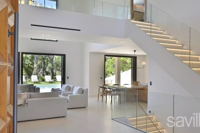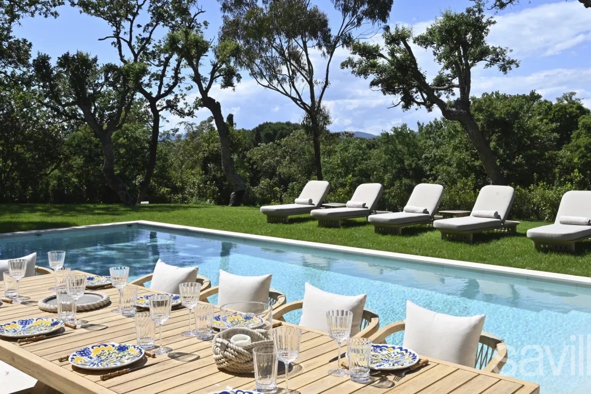 Découvrez cette somptueuse villa neuve d'une surface donnée de 500 m² environ, offrant des prestations haut de gamme, sur un superbe terrain paysager de 1760 m², agrémenté d'essences méditerranéennes luxuriantes avec de nombreux oliviers, citronniers, figuiers et Lauriers... La propriété est inspirée d'un mode de vie Californien, avec des volumes confortables, de belles hauteurs sous plafond et une atmosphère conviviale. Idéale pour des vacances en famille ou entre amis. Idéalement située à environ 3 km de Saint-Tropez, il est possible de s'y rendre sans trafic à vélos, via la piste cyclable, le long de la route côtière. La proximité de la mer à environ 100 m de la villa, est aussi très appréciable. La propriété bénéficie de finitions et d'une décoration raffinées, où les moindres détails furent pensés. Equipée de services tels qu'une salle de gym, salle de massages, hammam, cinéma, espace de jeux et bar, pour un total confort. L'ensemble répartie sur deux niveaux + un niveaux inférieur, elle se compose de la manière suivante : Rez-de-chaussée : - Majestueuse entrée avec vestiaire et toilettes invités - Salon spacieux avec belle hauteur sous plafond, charpente apparente et cheminée - Cuisine semi-ouverte avec plan de travail en marbre brésilien, chêne massif et cave à vin - Salle à manger s'ouvrant sur une terrasse aménagée pour accueillir jusqu'à 12 convives - Deux chambres en suite avec penderies, salles de douches avec toilettes, et accès à une terrasse extérieure 1er étage : Un escalier d'exception mène au premier étage, où vous découvrirez deux chambres principales avec vue mer et vue sur la piscine. La première chambre dispose d'un espace nuit avec coin bureau, terrasse privative, dressing et salle de douches avec toilettes. La seconde chambre de Maîtres offre un dressing, terrasse privée, salle de bains complète avec douche, baignoire, toilettes et espace bureau. Niveau inférieur : - Espace bien-être comprenant un bar, une salle de massage, un hammam, un cinéma et une salle de sport - Deux chambres en suite avec salles de douches et toilettes - Buanderie équipée Extérieurs : - Jardin paysager avec piscine chauffée de 12m x 5m - Terrasses aménagées avec bains de soleil, salon de jardin et salle à manger extérieure - Plusieurs espaces de stationnement La villa est entièrement climatisée disposant d'un système d'alarme, d'un accès internet, de caméras de surveillance extérieures et d'un système audio intérieur/ extérieur et chaque chambre est équipée de la télévision. Portail électrique et vidéophone. La villa est entièrement neuve ainsi que l'ensemble de ses équipements et mobilier. A noter qu'elle peut être loué avec un appartement 1 chambre dans le centre-ville de Saint-Tropez, cela sera idéal pour loger par exemple du personnel de façon indépendante. Numéro d'enregistrement : 83065000841X8 Les prix varient en fonction de la période de location - seuls les tarifs minimums sont renseignés en annonces : nous vous invitons à nous consulter pour toute demande de tarification. Veuillez noter que des frais de location supplémentaires s'appliquent. Honoraires d'agence à la charge du locataire. Barème des honoraires de location disponible en ligne et sur demande. Contact: +33602735306.