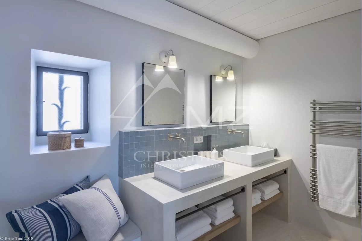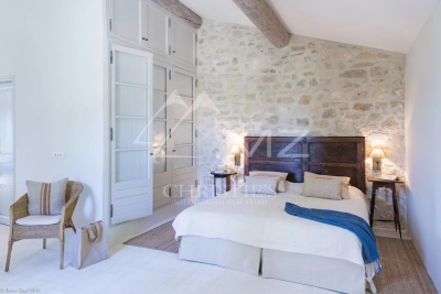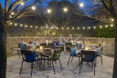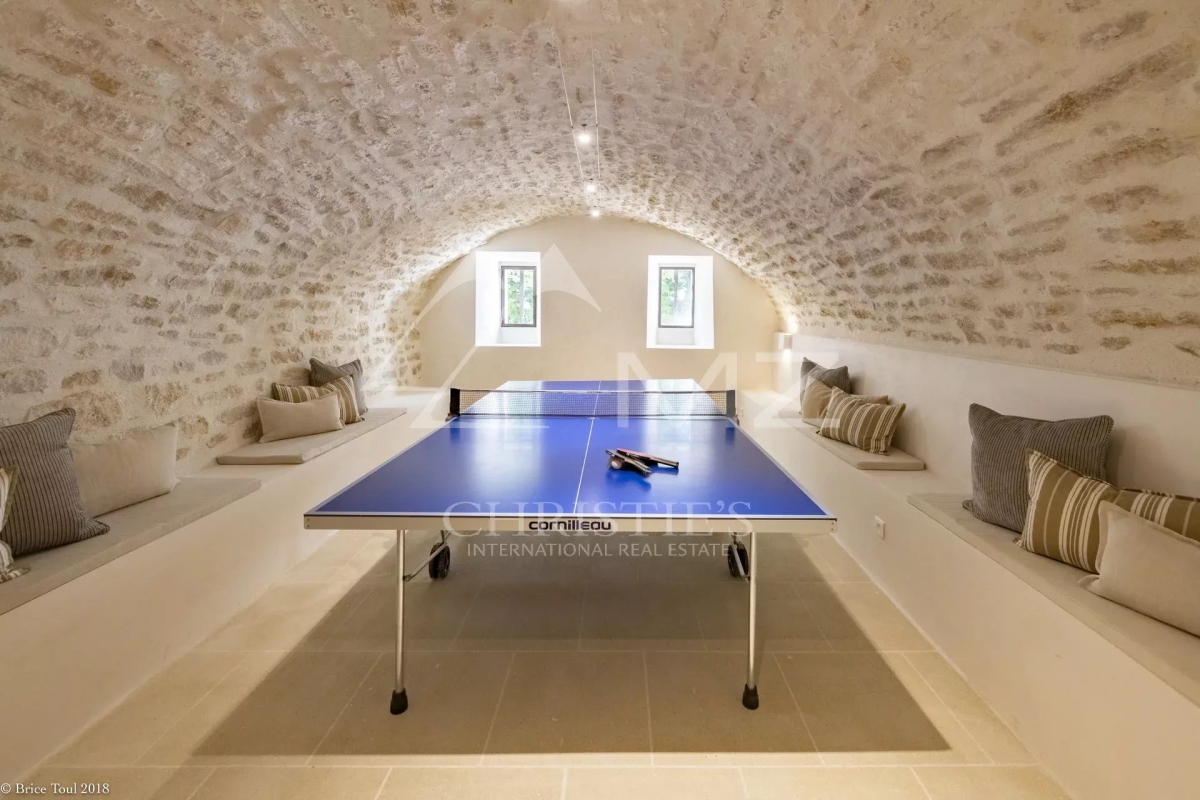 Idéalement située à un quart d'heure à pied du centre du village de Goult, mais à l'abri des regards, cette incroyable propriété restaurée avec raffinement vous attend pour des vacances paradisiaques. La vue sur le Luberon est dégagée depuis le beau jardin et ses nombreuses essences méditerranéennes. Le charme réside également dans ses nombreuses terrasses, privatives ou non, et coins ombragés. La superbe piscine à débordement et de forme libre (longue de 15m) vous permet de profiter d'une vue panoramique sur le Luberon et est équipée d'une petite cuisine d'été, d'une douche extérieure, d'un coin salon et de nombreux bains de soleil. De beaux volumes et des prestations très soignées caractérisent la maison principale qui propose 4 vastes suites avec leurs terrasses indépendantes. Deux autres suites en annexes complètent cet ensemble rare pouvant accueillir confortablement jusqu'à 18 convives.