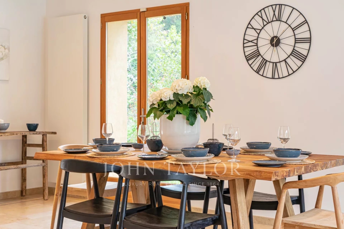 Très belle maison de famille au coeur de la campagne grassoise au calme, elle comprend : Un salon / salle à manger avec cuisine bien équipée, et ouvertures patio et piscine Grand salon TV Une buanderie parfaitement équipée A l'étage : Chambre parentale avec lit 180 cm, un dressing, une salle de bains en suite, et climatisation 2 chambres avec chacune un lit de 160 cm, climatisation et leur salle de douche en suite avec WC, et un balcon. Une maison d'amis avec salon climatisé et cuisine, une grande chambre climatisée, une petite chambre et une salle de douche avec WC. Equipements: climatisation, nombreuses terrasses avec salon d'été et salle à manger extérieur, piscine chauffée avec alarme, douche extérieur et table de ping pong. Les informations sur les risques auxquels ce bien est exposé sont disponibles sur le site Géorisques : www.georisques.gouv.fr Contact: 0609238497.
