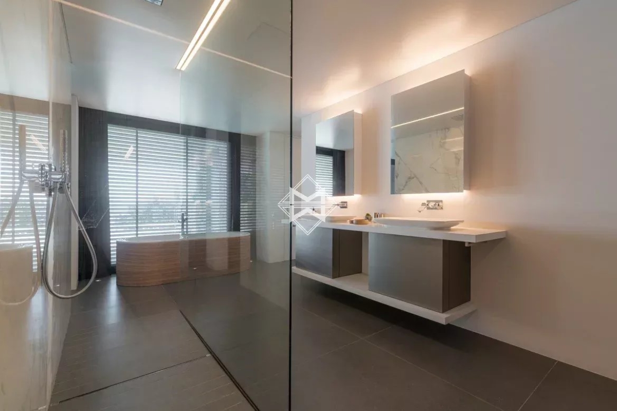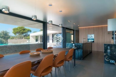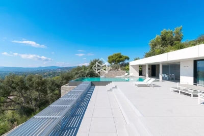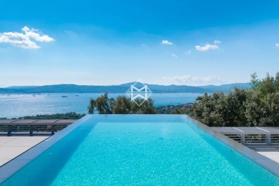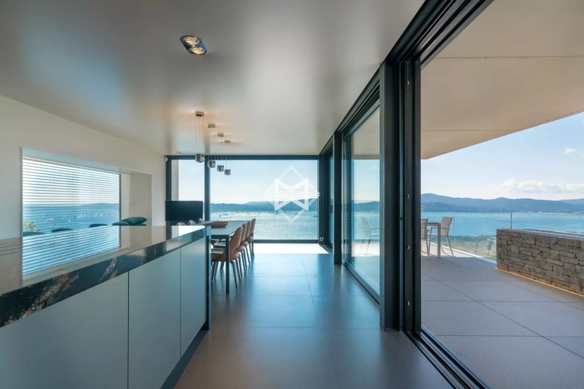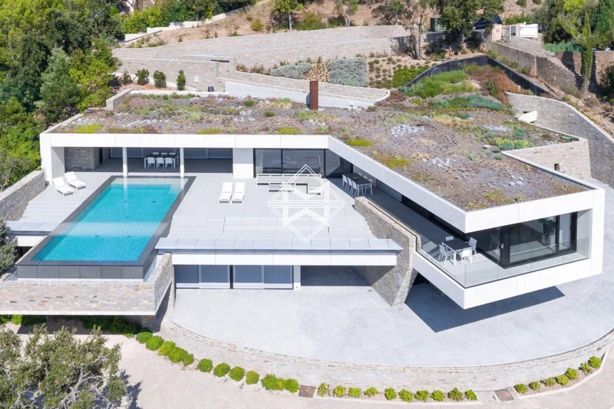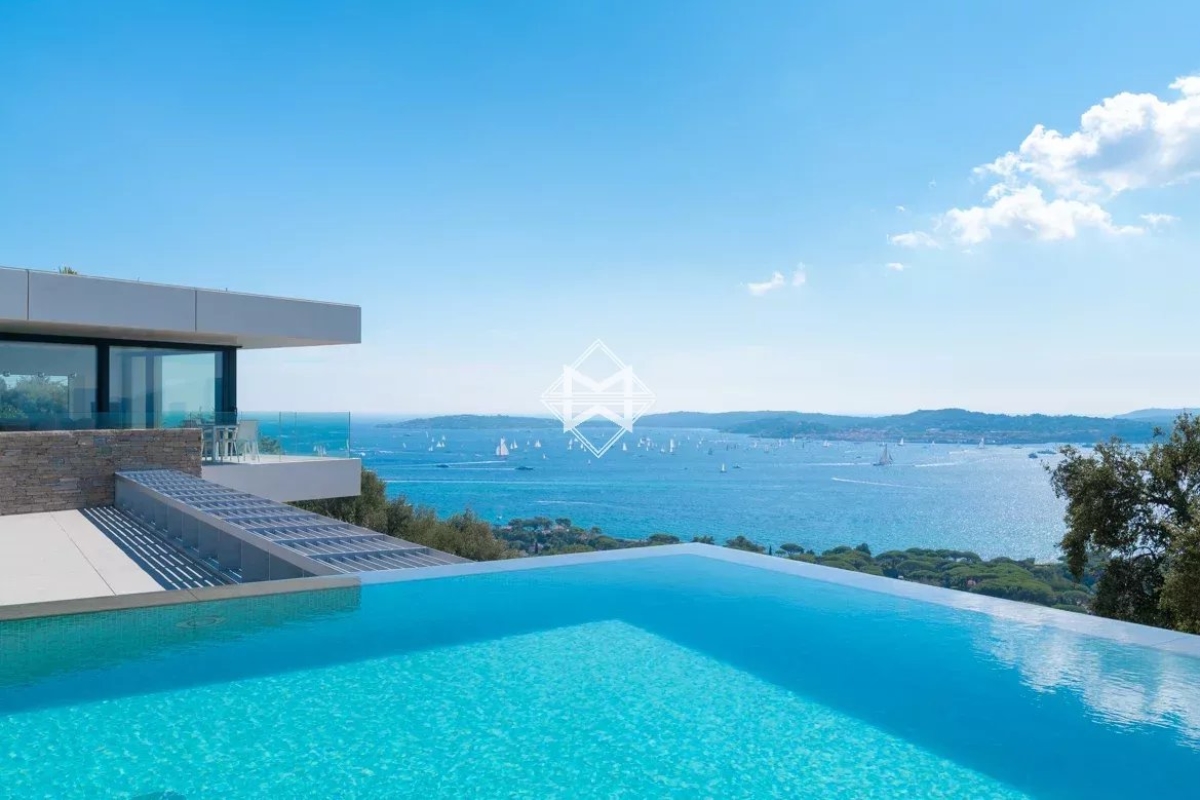EXCLUSIVITE Vue mer panoramique absolument extraordinaire pour cette luxueuse propriété contemporaine neuve en position dominante. Située à proximité du prestigieux Golf de Beauvallon à Grimaud, au cœur d'un Domaine privé, ce véritable bijou architectural contemporain propose des volumes généreux avec 350 m2 de surface, comprenant notamment une grande pièce à vivre et 5 chambres. Cette propriété d'exception a été conçue et décorée avec raffinement, goût et sobriété. Jeux de lumière, de transparence et de perspectives sont de mise pour cette villa ouverte sur l'extérieur, pour profiter de la vue mer à couper le souffle sur le Golfe de Saint-Tropez lors de ses vacances. A l'instar des espaces intérieurs, le terrain paysager d'une superficie de 2600 m² a été optimisé pour jouir pleinement du panorama exceptionnel, avec ses vastes terrasses et sa piscine miroir à débordement. L'architecture de cette propriété, la grande qualité de construction et des matériaux, conjugué à la vue spectaculaire en font indéniablement l'une des plus belles et prestigieuses propriétés du Golfe de Saint-Tropez. Garage, cave à vins, toit végétalisé, chambre froide, alarme intérieure et extérieure, domotique performante, climatisation réversible, terrain de pétanque. Un produit coup de cœur laissant incontestablement rêveur.