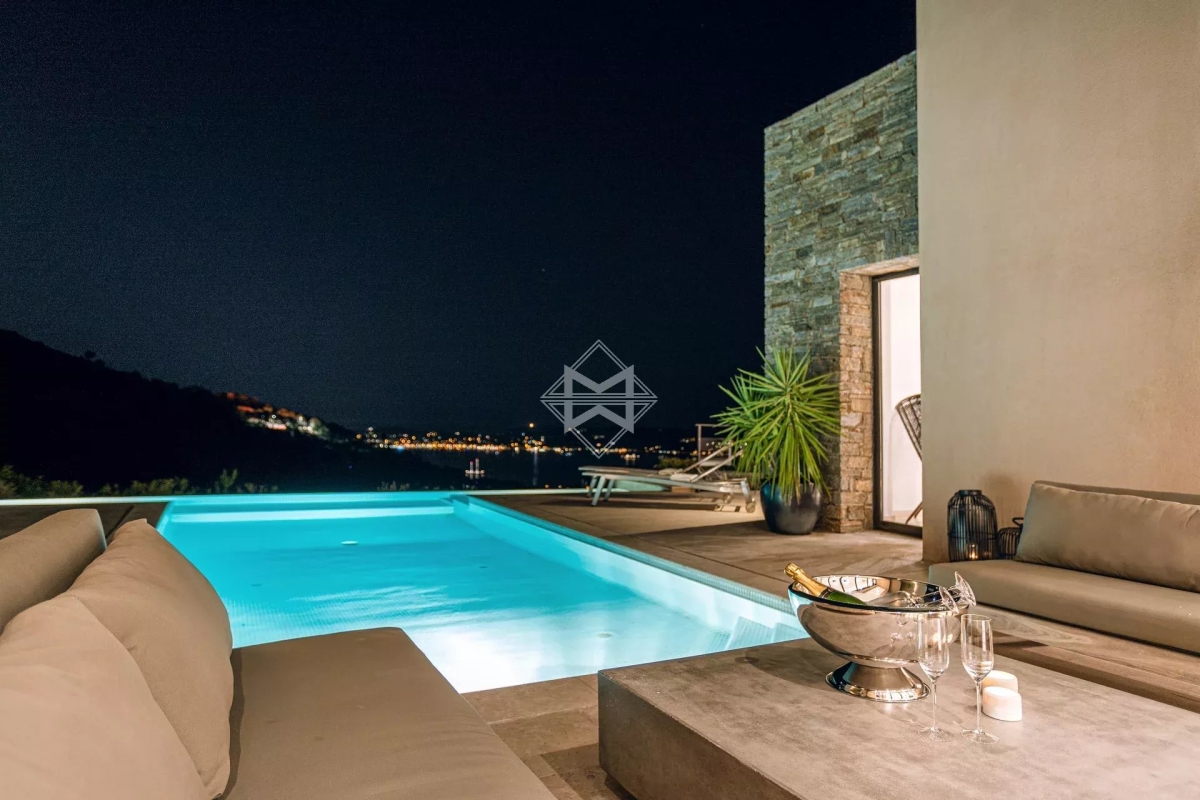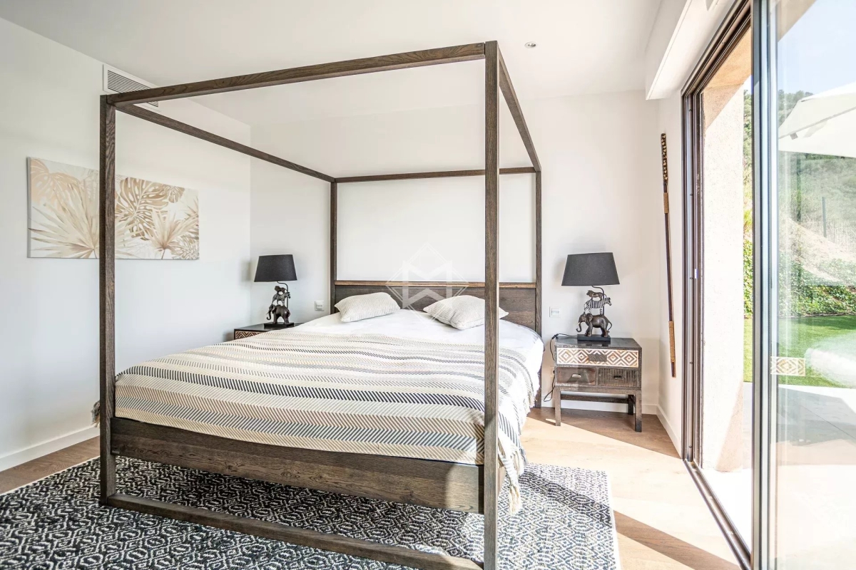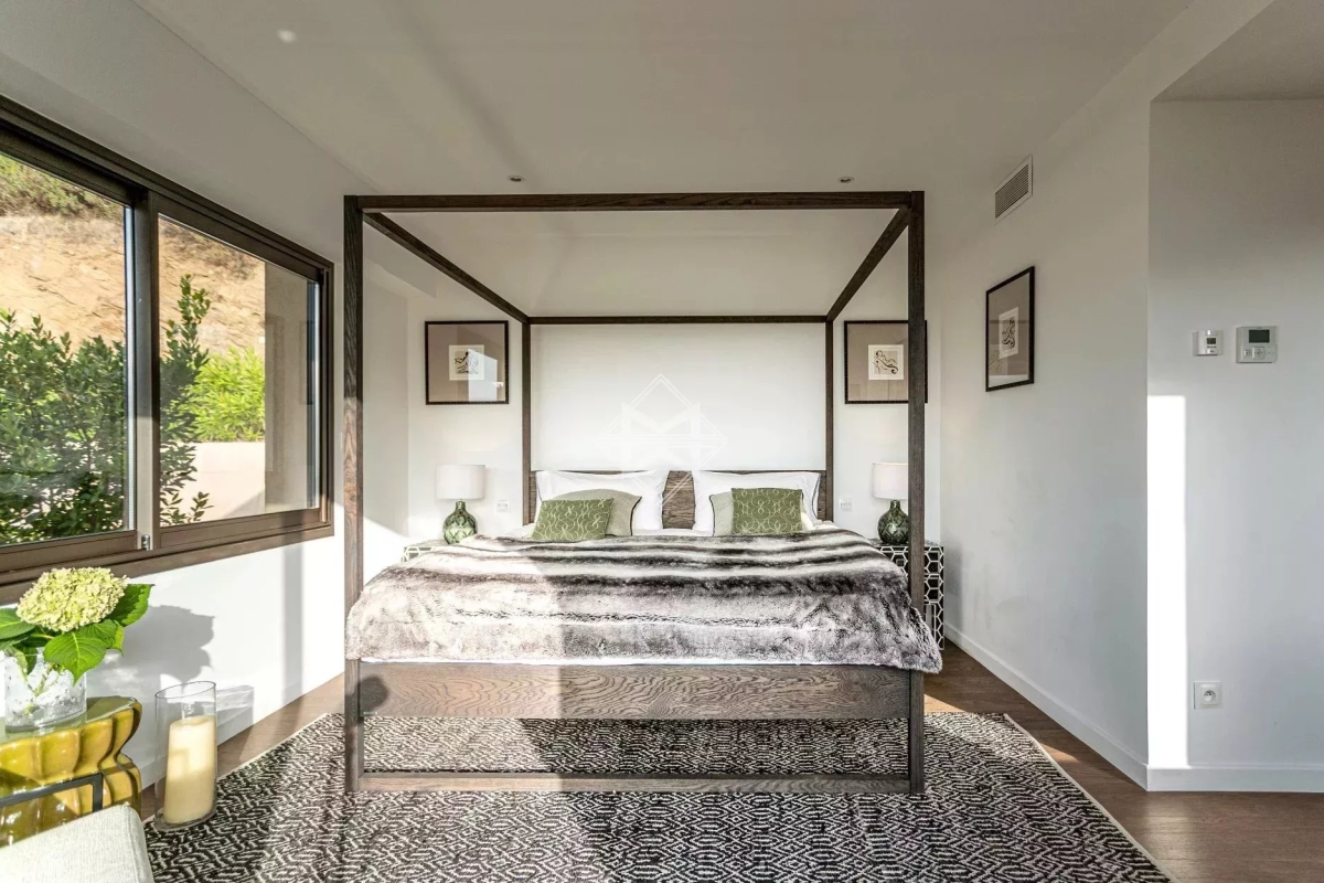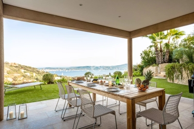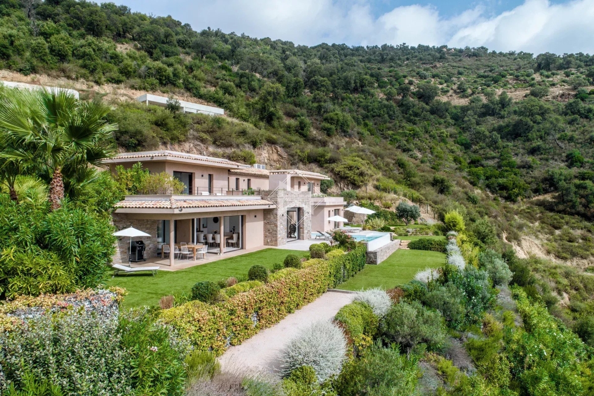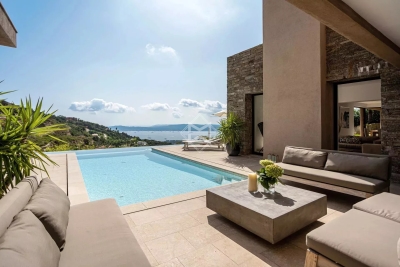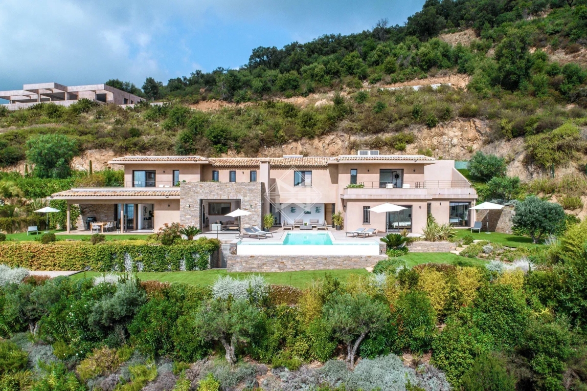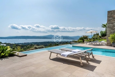 Au sommet d'une colline totalement préservée, dans petit domaine exclusif de 5 villas de prestige, cette splendide propriété d'architecte, construite en 2015, offre un vue sur le Golfe de Saint-Tropez et la mer à couper le souffle. Baignée de lumière (exposée plein sud), cette propriété propose notamment 4 grandes et belles chambres en suite, des pièces à vivre donnant sur plusieurs terrasses et l'espace piscine, le tout développant une surface totale de 543 m2 (dont 273m2 habitable). La villa repose sur un terrain en restanque de 2545m2 joliment paysagé et surplombant la baie, avec une piscine chauffée à débordement. La propriété a été construite avec des matériaux de premiers choix et offre des prestations haut de gamme (cuisine de qualité, chauffage par le sol, climatisation réversible, garage de 45 m2,...). Une vue mer exceptionnelle et un cadre reposant pour les amoureux de nature en quête de tranquillité .