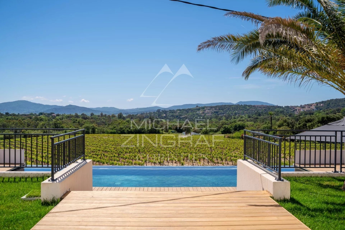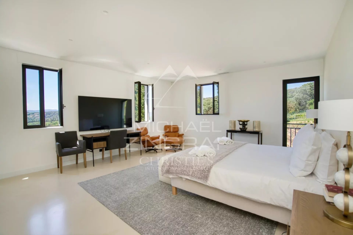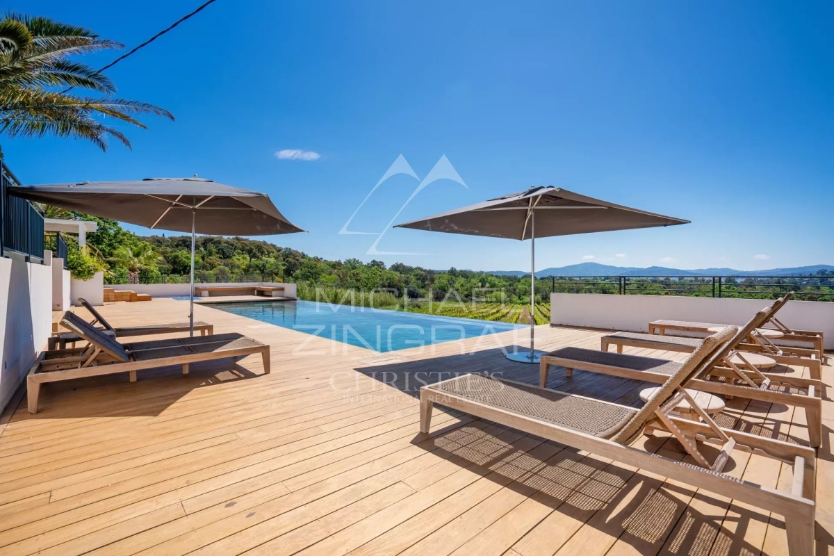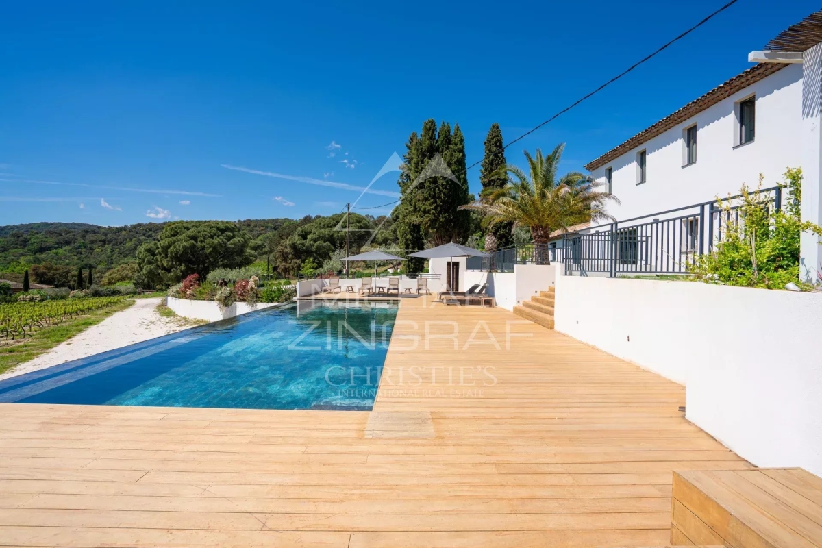 Niché dans un paisible village, ce domaine unique offre un cadre de vie idyllique au sein d'un parc paysagé de 4 hectares. Véritable havre de paix, il mêle le charme de la nature environnante à l'élégance d'une bastide ancienne entièrement rénovée. Avec ses 450 m² de surface habitable, la bastide allie le cachet de l'ancien aux prestations modernes. Elle comprend 6 chambres spacieuses, dont une somptueuse suite parentale pensée comme un cocon de confort et de tranquillité. Une dépendance indépendante vient compléter ce bien, idéale pour recevoir ou aménager un espace de travail ou de loisirs. Le parc, soigneusement entretenu, offre une diversité d'ambiances entre zones arborées, massifs floraux, et larges pelouses ouvertes sur la campagne environnante. Une grande piscine trône au cœur de cet écrin de verdure, surplombant une vue panoramique et dégagée sur les vignes à perte de vue. Un lieu rare, alliant caractère, volumes généreux et cadre enchanteur — idéal pour une résidence principale comme secondaire. Numéro d'agrément : 83068 002157 FW