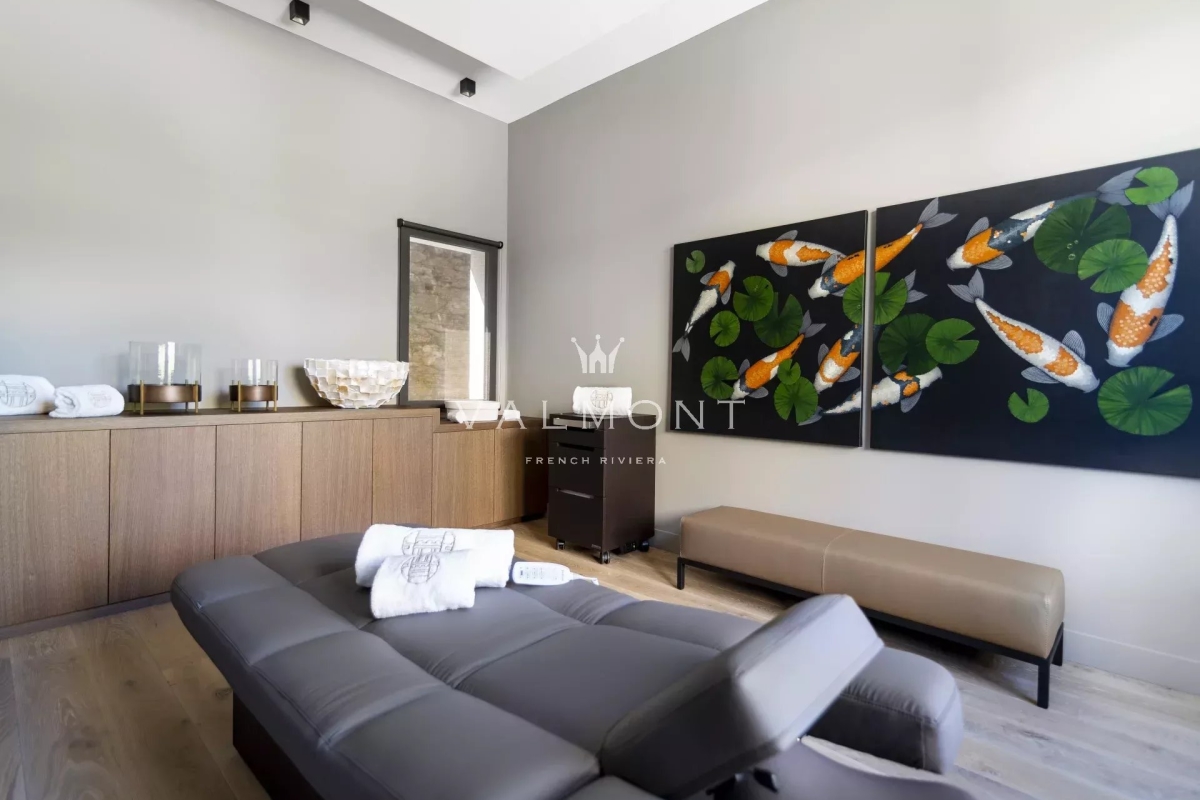 LA CROIX VALMER: Située à 15 minutes de Saint Tropez, au sein d'un domaine privé à l'abri de tous les regards, cette villa familiale offre un comfort supreme ainsi que des services dignes de plus grands palaces. Cette demeure d'exception d'environ 1000 m2 habitables profite également de 8000 m2 de jardin complanté ainsi que d'une belle vue mer. Les spacieux intérieurs, soigneusement décorés procurent le sentiment d'apaisement et de bien être. 11 chambres en suite dont 3 suites parentales sont à la disposition des occupants. Dans l'espace de detente on trouve une salle de sport, une magnifique piscine avec son pool house et le jacuzzi. Nombreuses terrasses permettent de profiter pleinement d'un cadre exceptionnel promettant des vacances inoubliables.