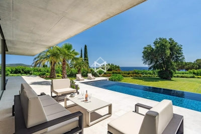 La Croix-Valmer, superbe villa contemporaine avec magnifique vue mer. Le salon de part ses immenses baies vitrées offre une vue mer panoramique, une magnifique ouverture sur l'espace piscine. La villa comprend 4 chambres spacieuses, chacune accompagnée de sa propre salle d'eau pour un confort optimal. Un magnifique jardin aux essences méditerranéennes agrémente cette propriété. La villa est à proximité immédiate des plages de Gigaro. Un coin de paradis pour un séjour de rêve.