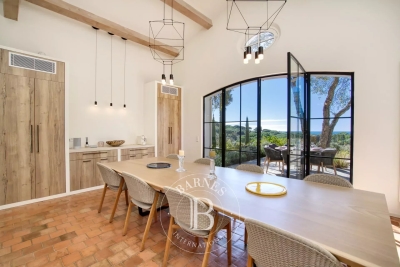Située sur la commune de la Croix-Valmer, cette villa de charme d'environ 400m² bénéficie d'une situation idéale, à proximité de la plage de Gigaro, offrant une jolie vue sur la mer. A l'étage, deux chambres en suite ainsi que deux chambres doubles avec une salle de douche commune. Au rez-de-chaussée, une belle pièce de vie avec son salon et sa salle à manger, une cuisine entièrement équipée ainsi que deux chambres en suite et une salle TV. Au rez-de-jardin, un studio ainsi qu'une salle de jeux. En extérieur, un grand jardin arboré, de belles terrasses, des espaces détente, une jolie piscine ainsi qu'un terrain de pétanque et un petit terrain de basket. Équipements : Climatisation, WIFI, système d'alarme, places de parking. Services inclus : Ménage, linge de maison, linge de piscine et service de conciergerie BARNES personnalisé. « Les informations sur les risques auxquels ce bien est exposé sont disponibles sur le site Géorisques : www.georisques.gouv.fr » DPE en cours Bien situé dans une zone soumise à l'obligation de débroussaillement. Jessy PERROT - Agent commercial - EI - RSAC 833 330 913 Contact: +33652040169.